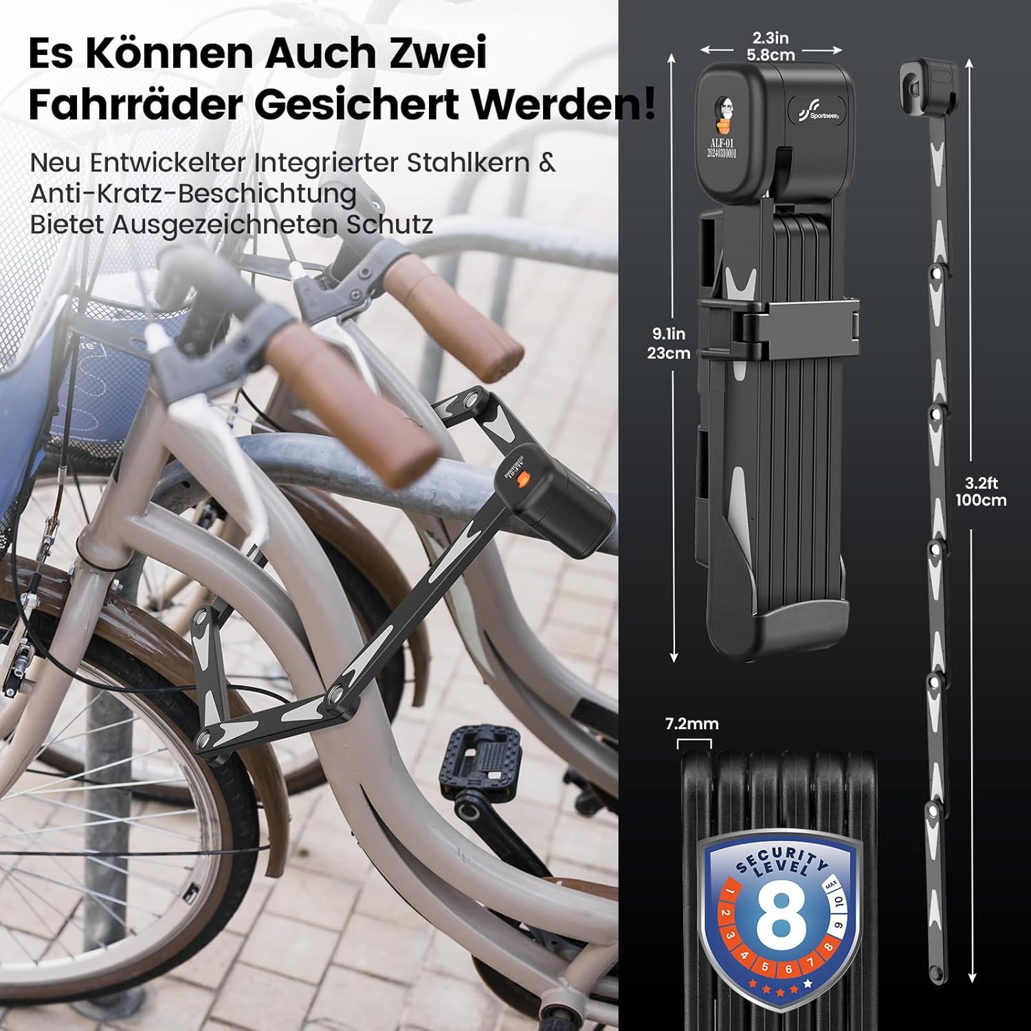 Sportneer Faltschloss Fahrrad und Motorrad Fahrradschloss mit Super B Aufbohrschutz-Schliesszylinder