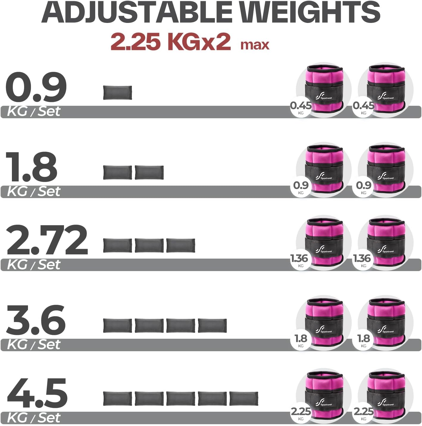 - 【Einstellbare Gewichte】: Sie können die Gewichte auf 0,45 kg * 2 / 0,9 kg * 2 / 1,36 kg * 2 / 1,8 kg * 2 und 2,25 kg * 2 einstellen, indem Sie 1-5 kleine Sandsäcke in die Schlitze stecken the slots.