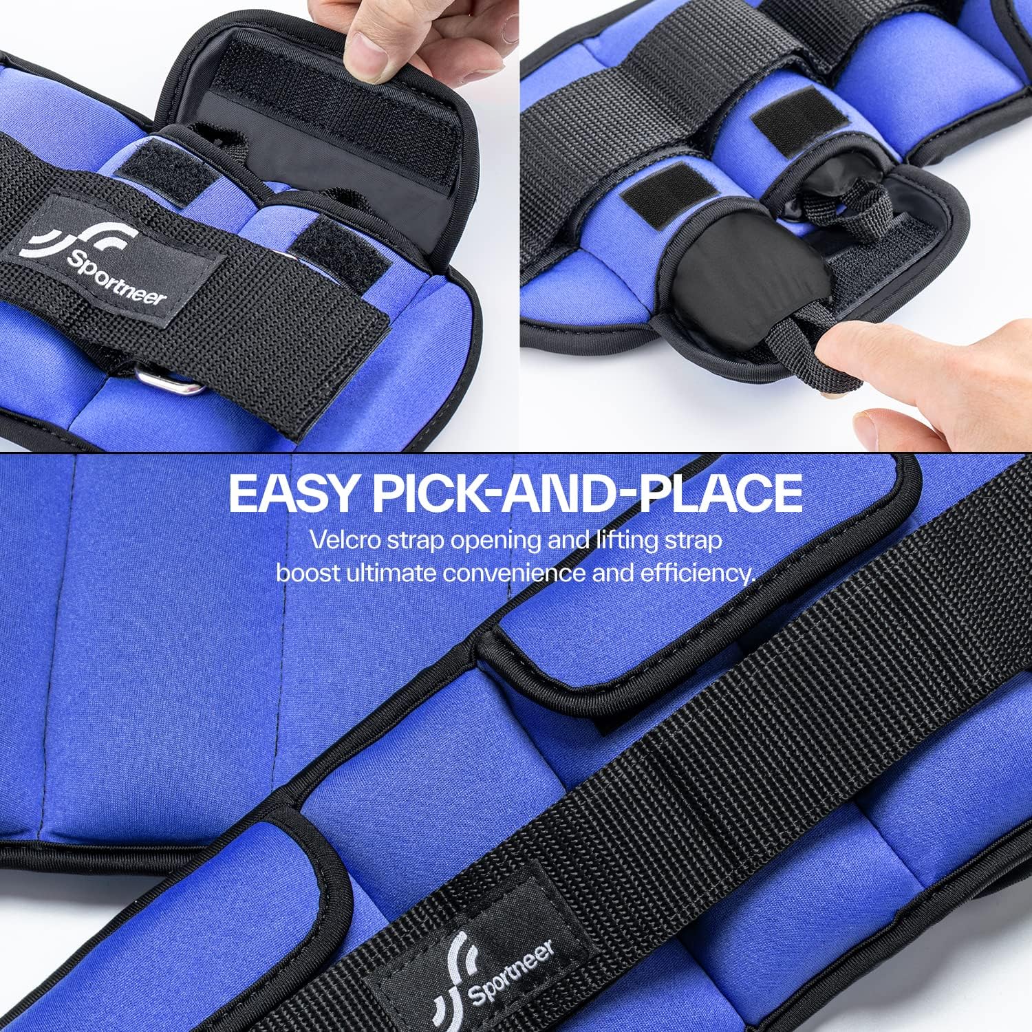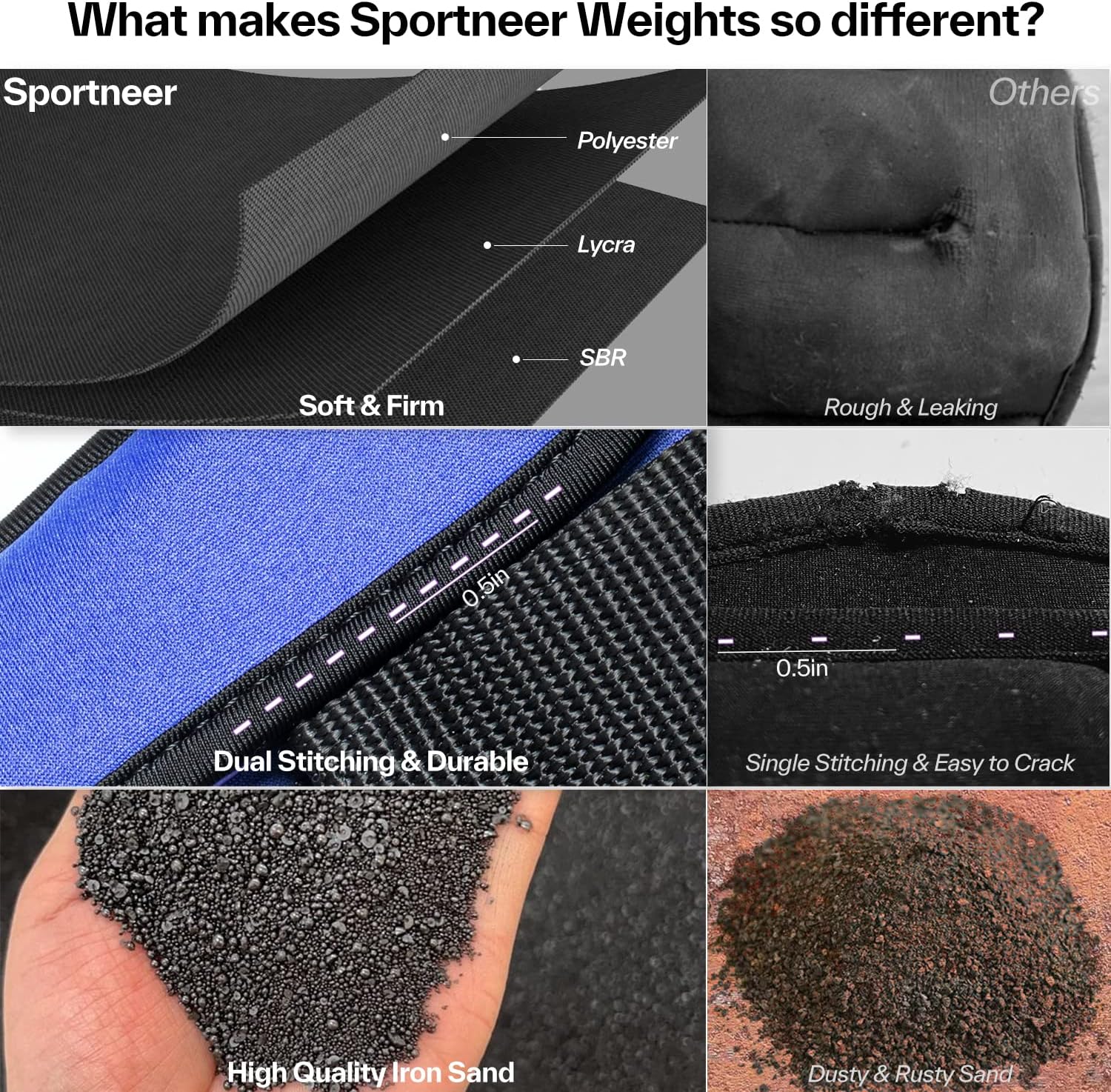 - 【Verbesserte, verstellbare Knöchelgewichte】: Die Sportneer Knöchelgewichte haben 4 + 1 Design – ein fester Sandsackschlitz und vier flexibel einstellbare Sandsackschlitze. Jeder winzige Sandsack wiegt 0,45 kg. Sie können Ihr Training Stück für