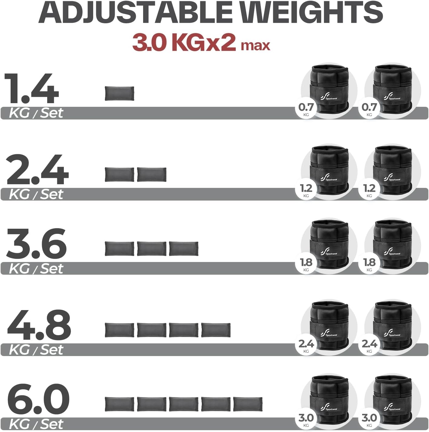 Sportneer verstellbare Gewichtsmanschetten für Fuss- oder Handgelenk, 2er Set, 0,58-2,9 kg pro Knöch