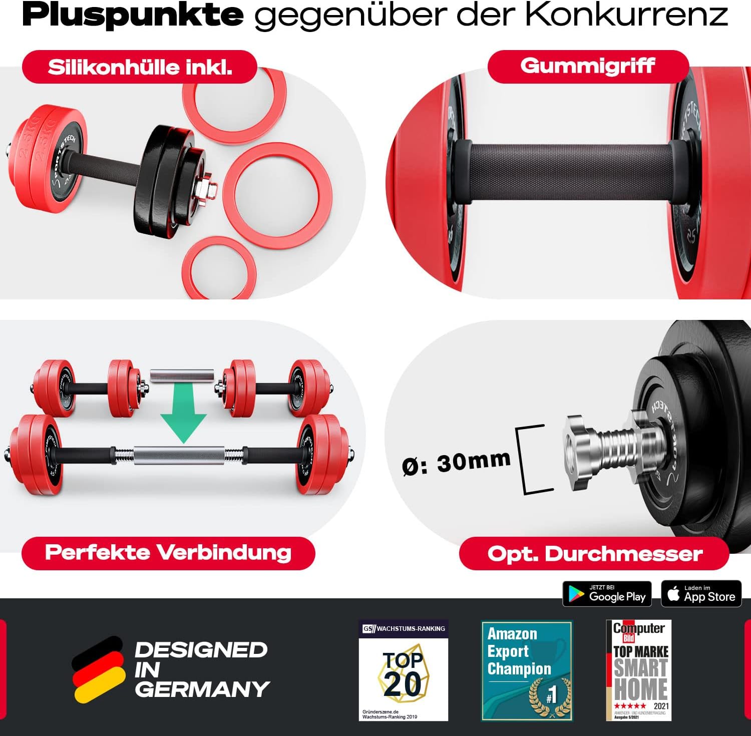 - ✅𝟮𝗜𝗡𝟭: Die AH300 Hantel kombiniert zwei Funktionen in einem Produkt – Funktionieren Sie die Kurzhanteln schnell & einfach zur Langhantel um! Die platzsparende Lösung für effektives Krafttraining zu Hause!