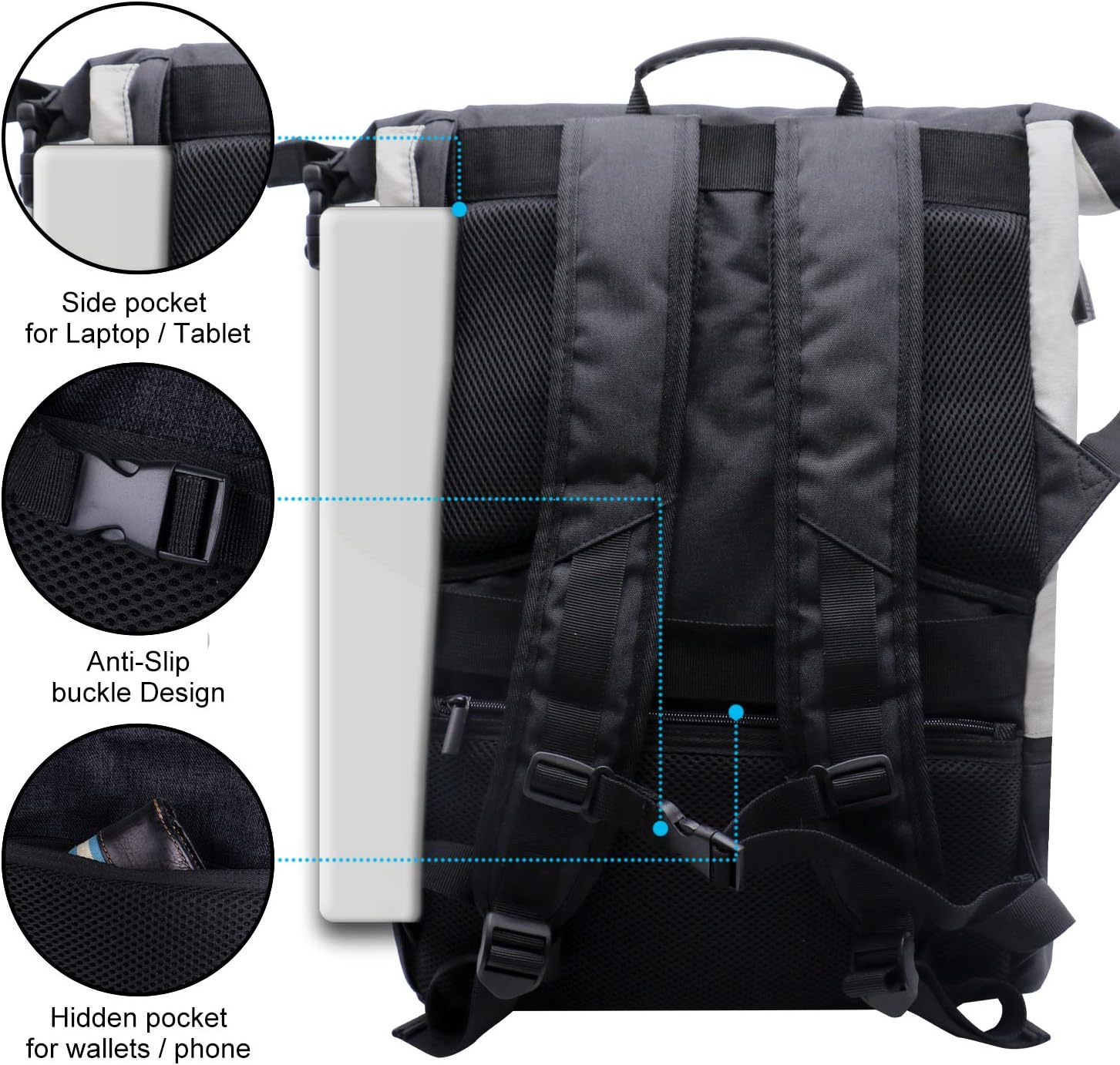 • ✔Viel Stauraum und viele Taschen: 1 Hauptfach, 1 separates Laptopfach, 1 Nasstrennfach, 1 innere kleine Tasche, 1 Aussentasche und 1 Diebstahlschutztasche. Einen separates Fach, bietet Platz für Ihren Laptop, iPhone, iPad, Stift, Schlüssel,