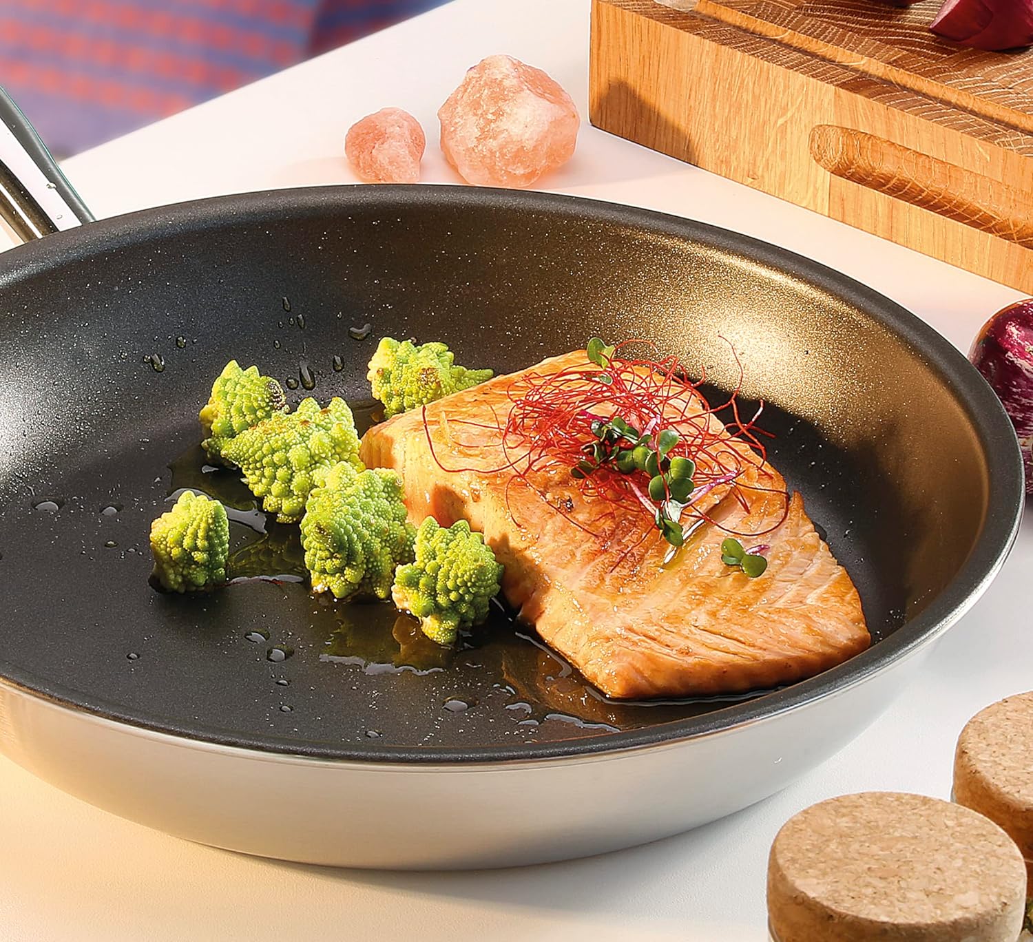 - GASTRONOMIEQUALITÄT: Hervorragende Wärmeleitfähigkeit durch den Aluminium-Kern und das bewährte 5-Lagen-Mehrschichtmaterial GLI. Die Bratpfanne ist als Profi Pfanne auf der ganzen Welt geschätzt.