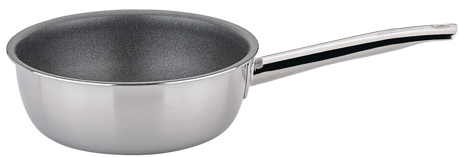 • Ergonomischer, wasserdichter Stiel, dauerhaft mit dem Pfannenkörper verschweisst.