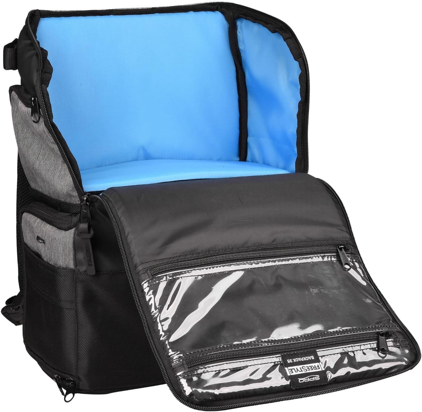 PRODUKTBESCHREIBUNGEN Rucksack von Spro Freestyle für Angler Masse: 45x35x17cm, mit 6 Tackleboxen (20x14x4cm) kann auch als Umhängetasche verwendet werden, zwei Rutenhalter, grosse Stabilität wasserabweisendes Gewebe, wasserabweisende innere Dokumententasche, faltbarer Boden, reflektierende Elemente Material: 100% Polyester