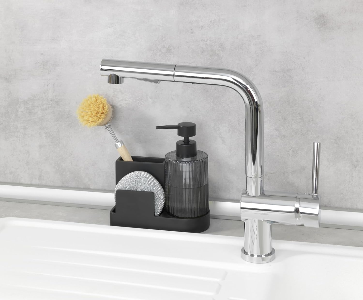- Spülorganizer: WENKO Spülorganizer Pina in elegantem Schwarz für Bad und Küche - Viel Stauraum für Spülmittel, Tuch, Bürste und Schwamm für perfekte Ordnung
