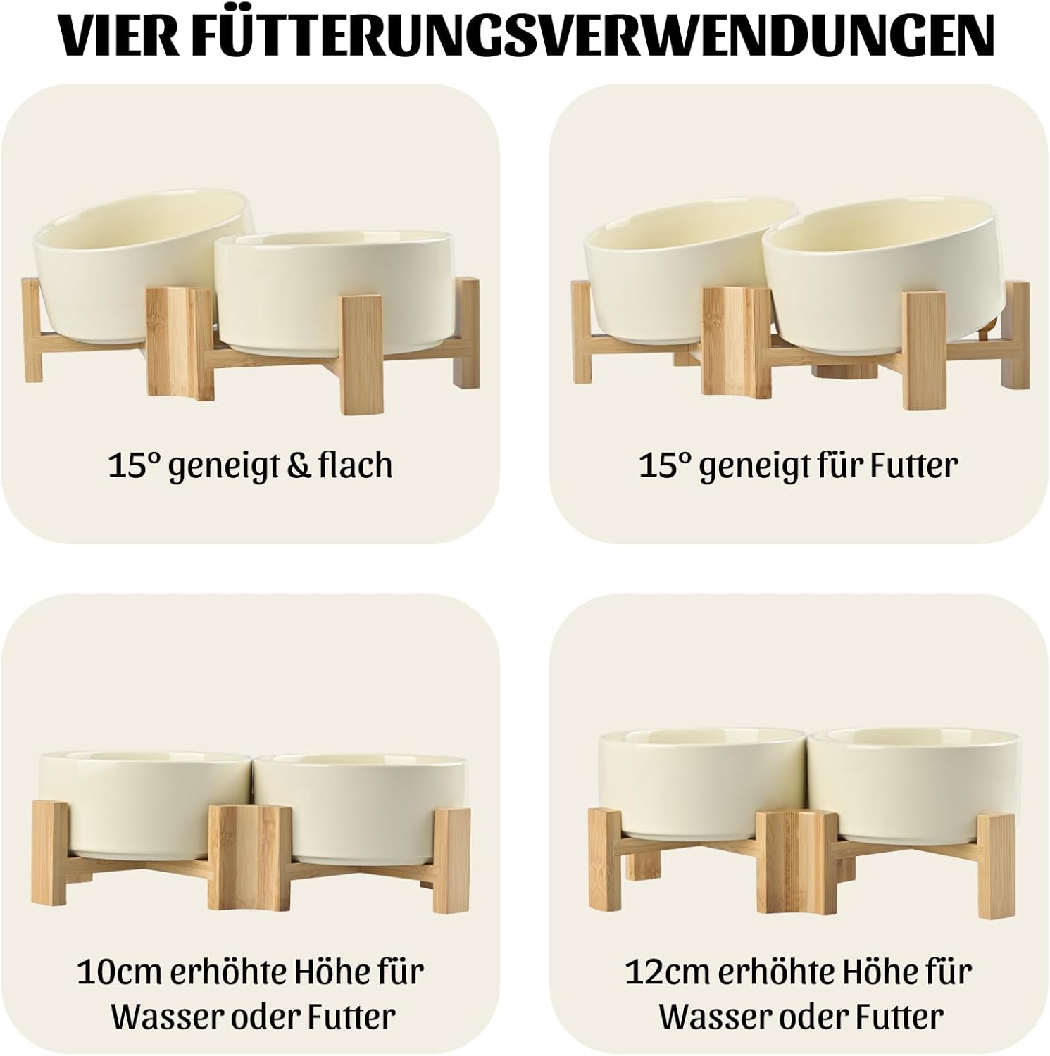 - [UMWELTFREUNDLICHES MATERIAL] Die geneigte Hunde- und Katzenschüssel von SPUNKYJUNKY verwendet sichere Keramik (frei von Blei und Cadmium), die bei hoher Temperatur gebrannt wird, und einen natürlichen Bambus- und Holzständer, um Ihren Haustieren eine