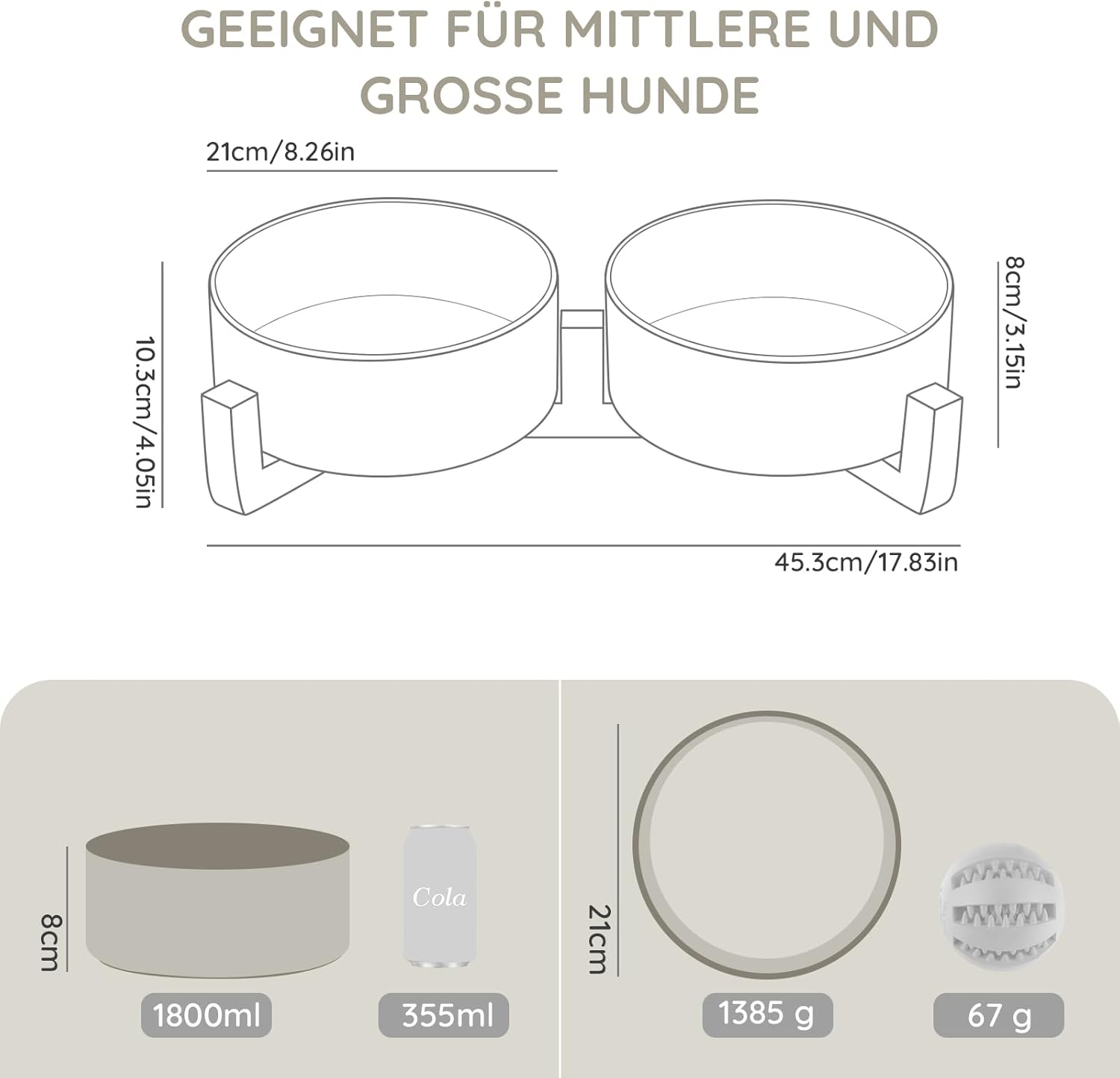 - 【Kapazität】 1800 ml Kapazität jeder einzelnen Schüssel. Das Fassungsvermögen der Schüssel ist gross genug. Super für grosse Hunde.