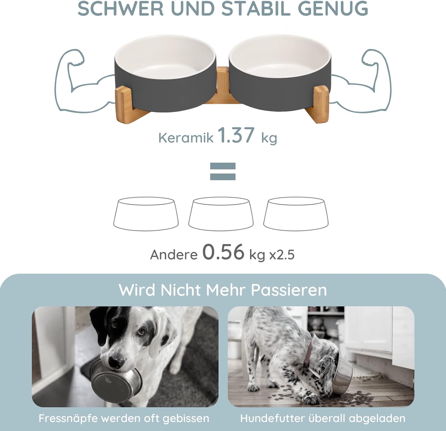 - 【Sicheres Keramikmaterial】SPUNKYJUNKY Hundenäpfe bestehen aus lebensmittelechtem Keramik und Naturholz, frei von Blei und Cadmium. Hochtemperaturkeramik, ungiftig, harmlos, geruchlos, langlebig.