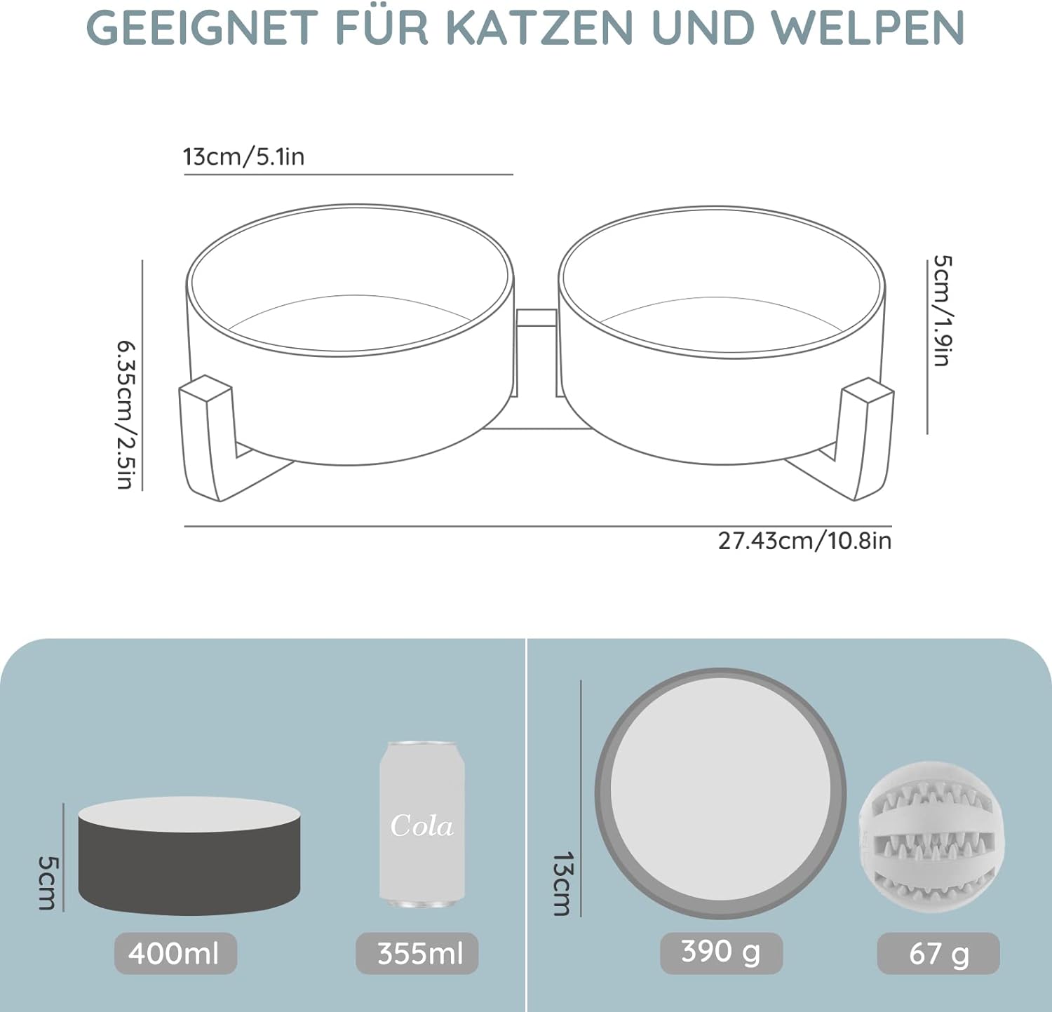 - 【Kapazität】Die Abmessungen des Futternapfs sind 5 Zoll breit und 1,97 Zoll tief (400 ml, 14,08 Flüssigunzen). Perfekt für Katzen sowie kleine Hunde.