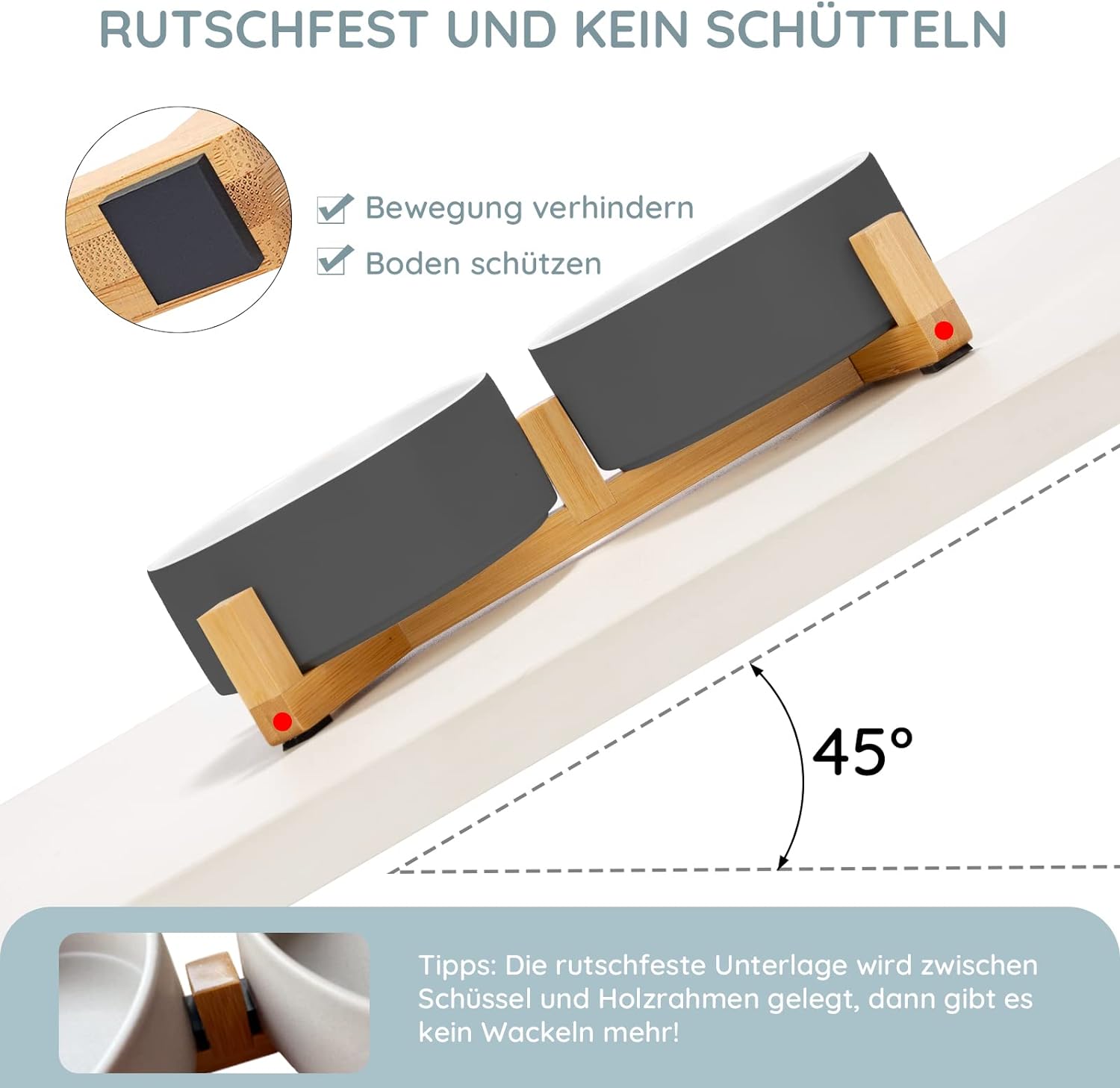 - 【Rutschfester Holzständer】Der einzigartige Bambusständer kann das Verschütten von Lebensmitteln effektiv verhindern und den Boden sauber und ordentlich halten. Rutschfester Schüsselboden für einfaches Aufnehmen und Abstellen.