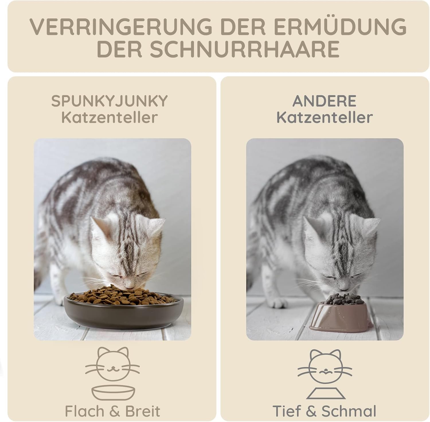 - Flaches Design: Flache Tiefe und Winkel erleichtern Katzen die Nahrungsaufnahme, vermeiden Ermüdung der Schnurrhaare und halten das Gesicht sauber