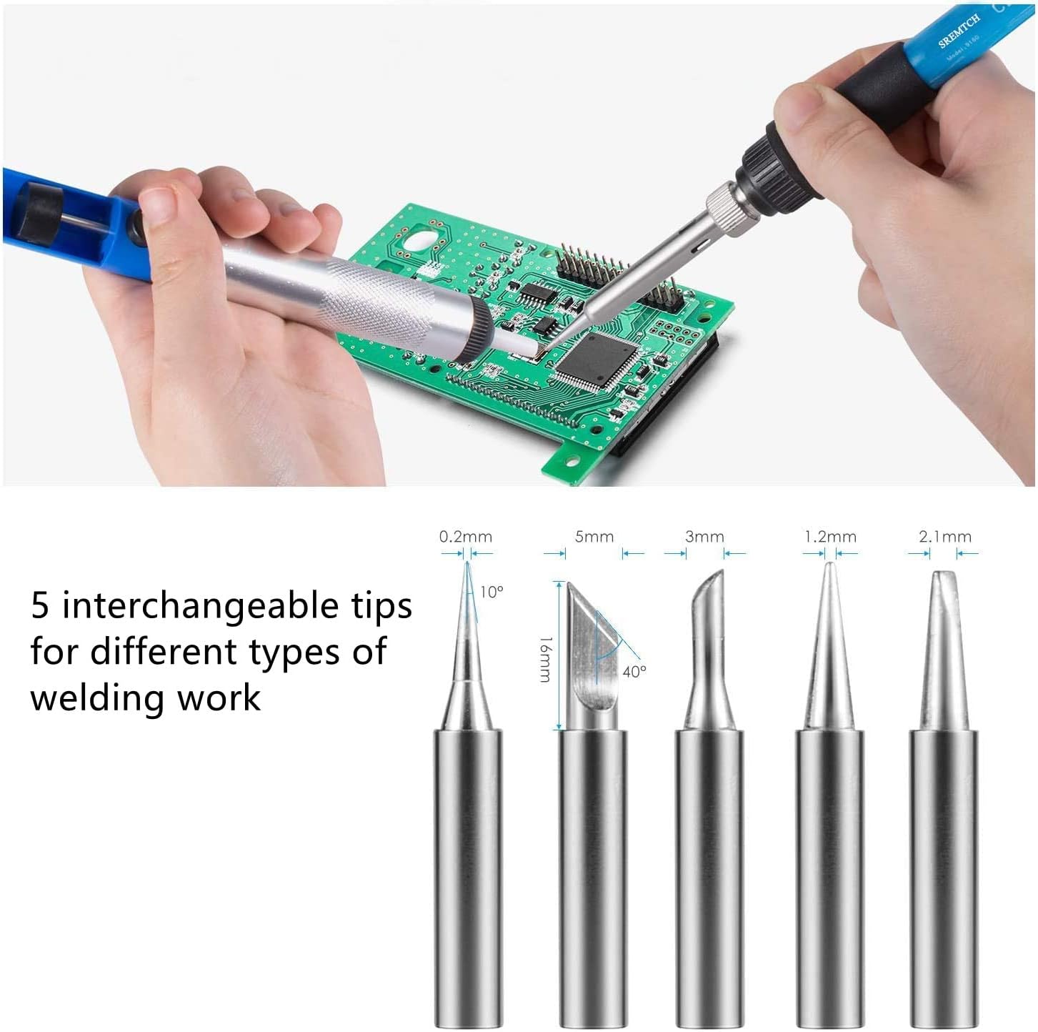 - Mehr Zubehör: mit 5 austauschbaren Spitzen für verschiedene Arbeitsplätze. 1 x Lötkolben für Wärmeableitung. Lötdraht Ø 1mm, Meltingpoint: 183°C