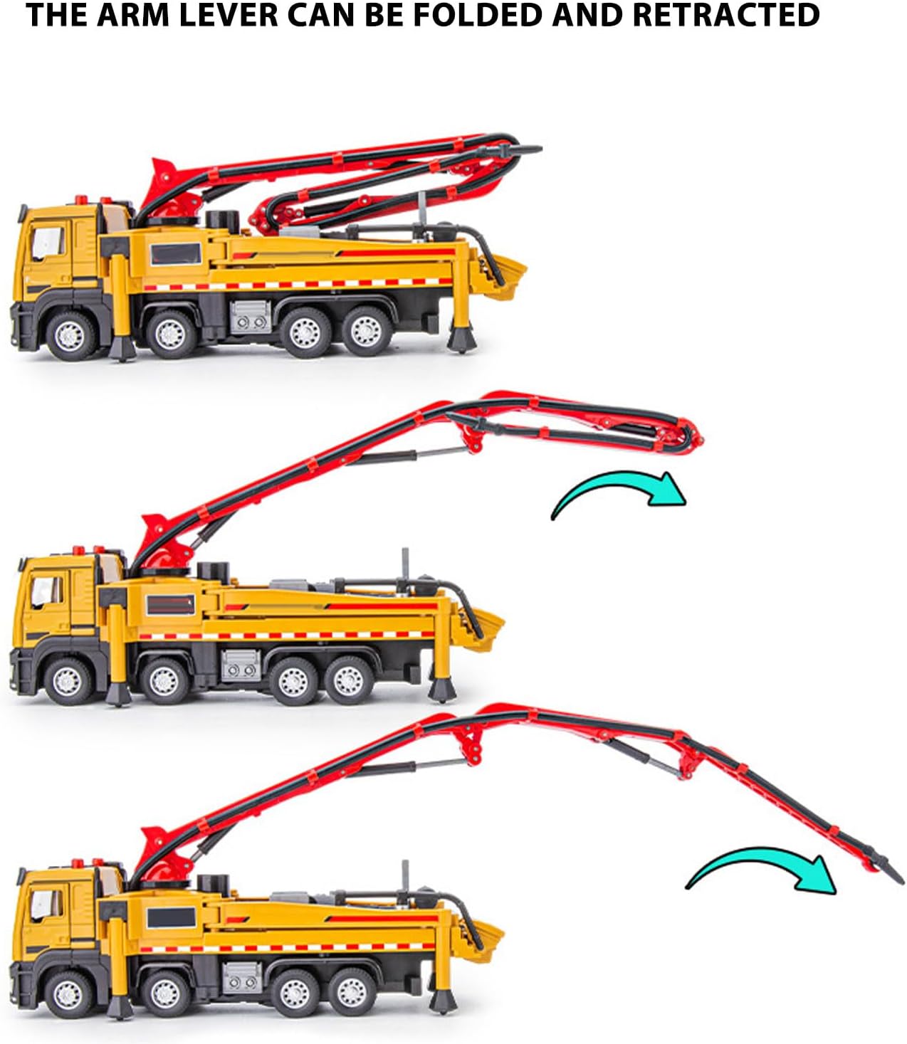 • Hervorragende Legierung: Betonpumpen-LKW-Modell aus Kunststoff und Legierungsmaterialien, langlebig und sicher Kinder zum Spielen, nicht leicht zu zerbrechen.