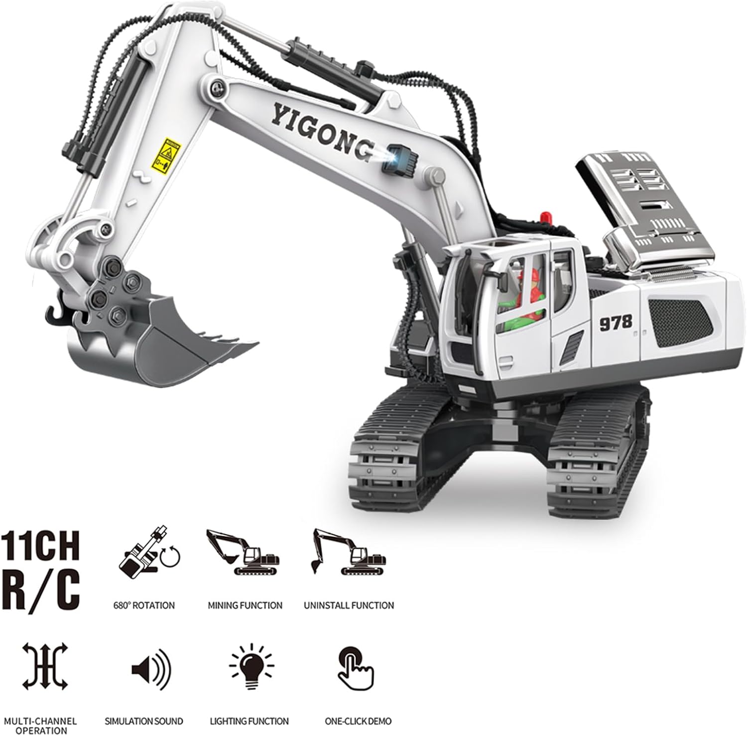 - Massstab 1:20: Der RC-Bagger hat einen Massstab von 1:20 mit lebendigen Formen und leuchtenden Farben, was Ihnen ein lebendiges Spielerlebnis bietet