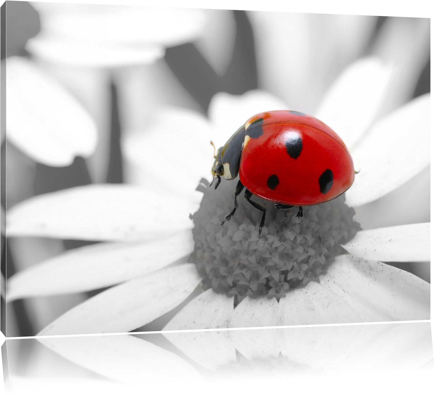 süsser Marienkäfer auf Gänseblume schwarz/weiss Format: 100x70 auf Leinwand, XXL riesige Bilder fert