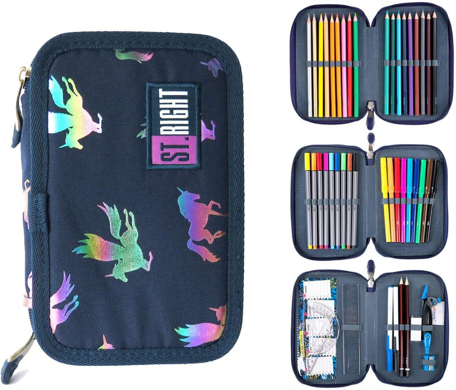 St. Right XXL Federtasche Federmappe Federmäppchen 46-teilig gefüllte Schüleretui 3-stöckig 19 x 13