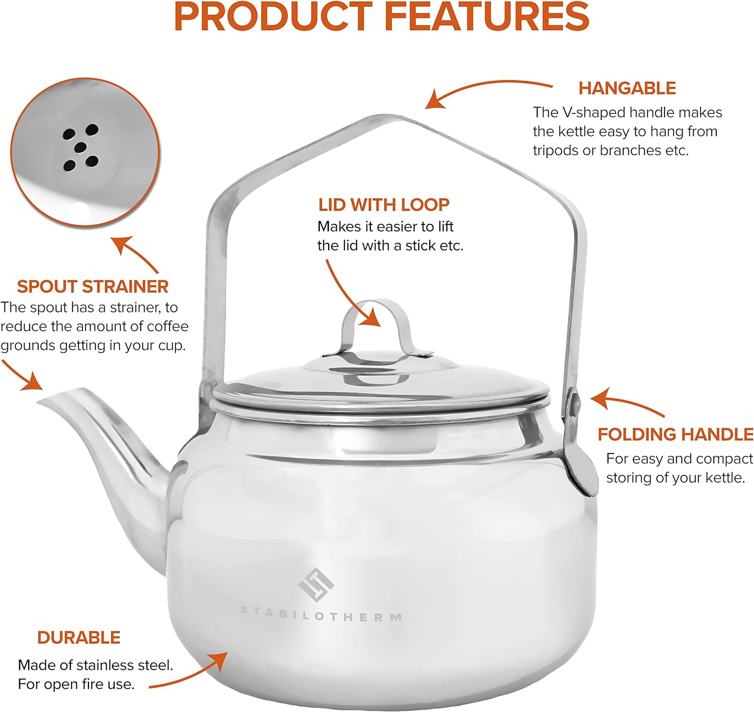- ✅ FÜR GRILL & FEUER: Unser Stabilotherm Kaffeekessel lässt sich perfekt über einem Lagerfeuer erwärmen. Der spezielle Griff wurde extra so designt, dass die Kaffeekanne auf einem Ständer über dem Feuer aufgehängt werden kann.