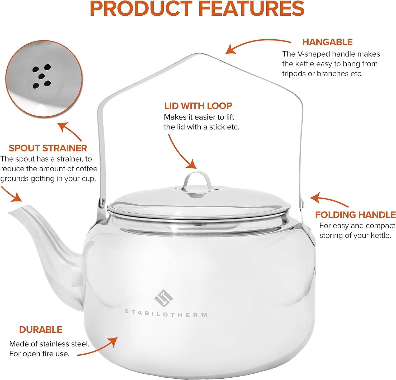 STABILOTHERM Edelstahl Outdoor-Kaffeekessel 4 Liter I ideal für Lagerfeuer & Grill – Teekessel Wasse