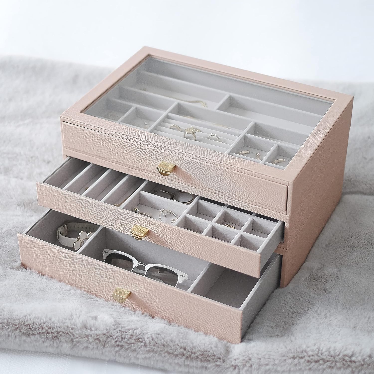 Stackers Blush Supersize Jewellery Box - Set of 3 (with Drawers) Blush Pink, Blush Pink