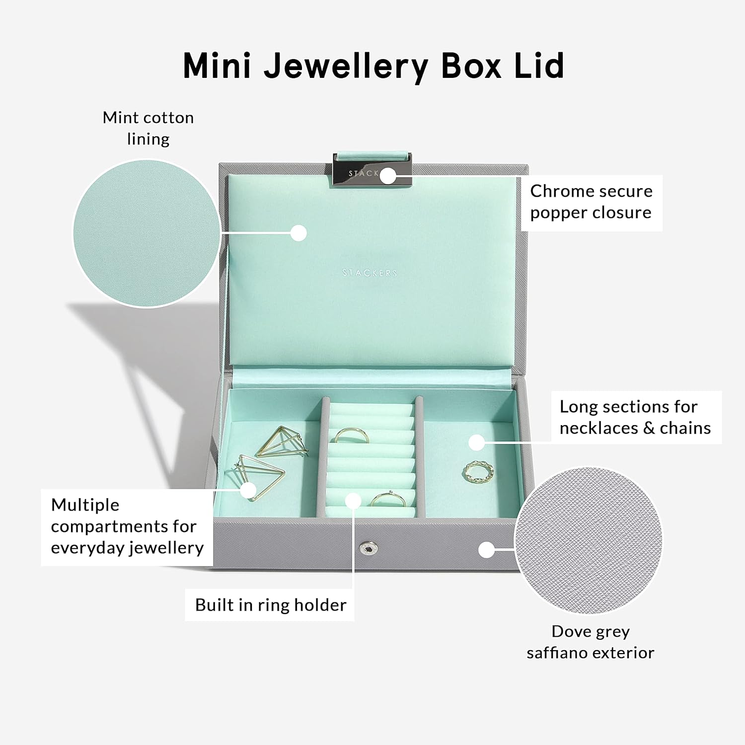 - Lassen Sie Ihre Schmuck nicht verworren, angelaufen und vergessen. Organisieren Sie Ihre Kollektion mit einer Stackers-Schmuckschatulle
