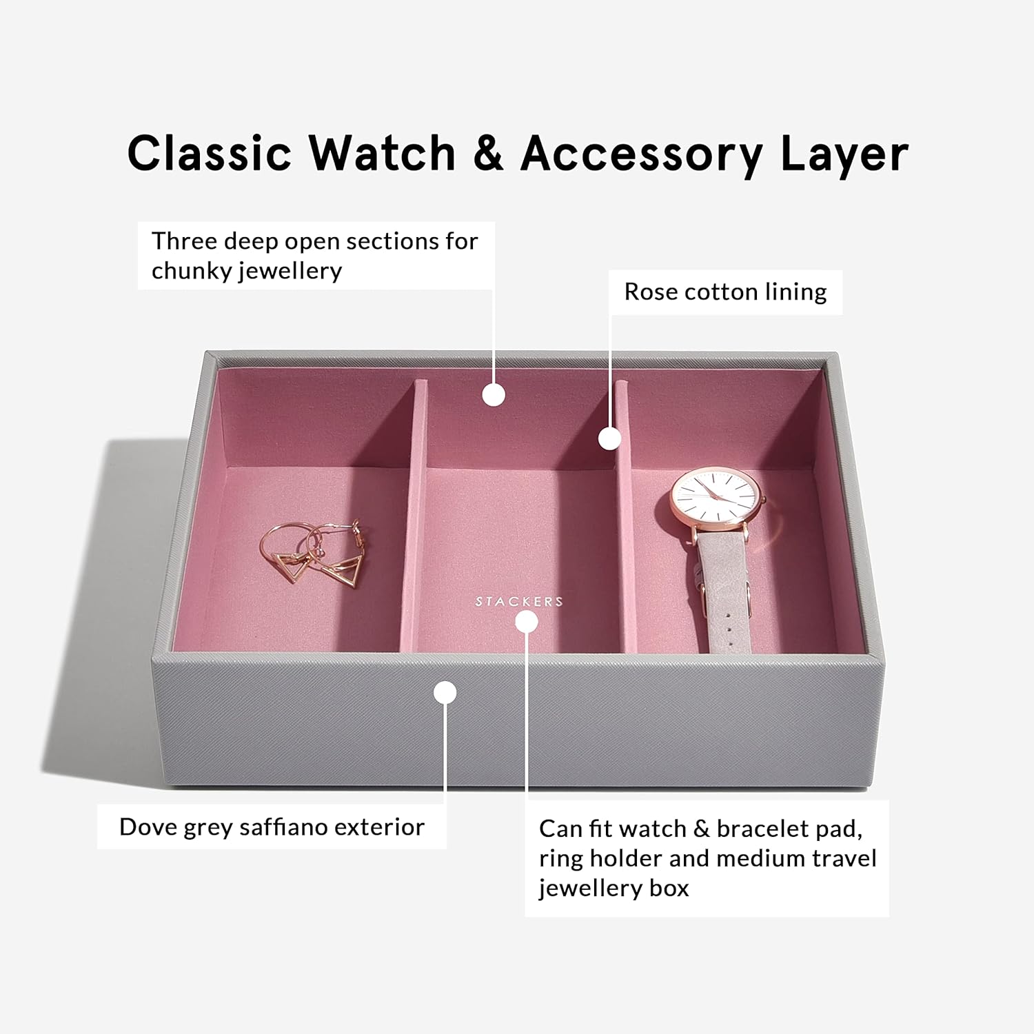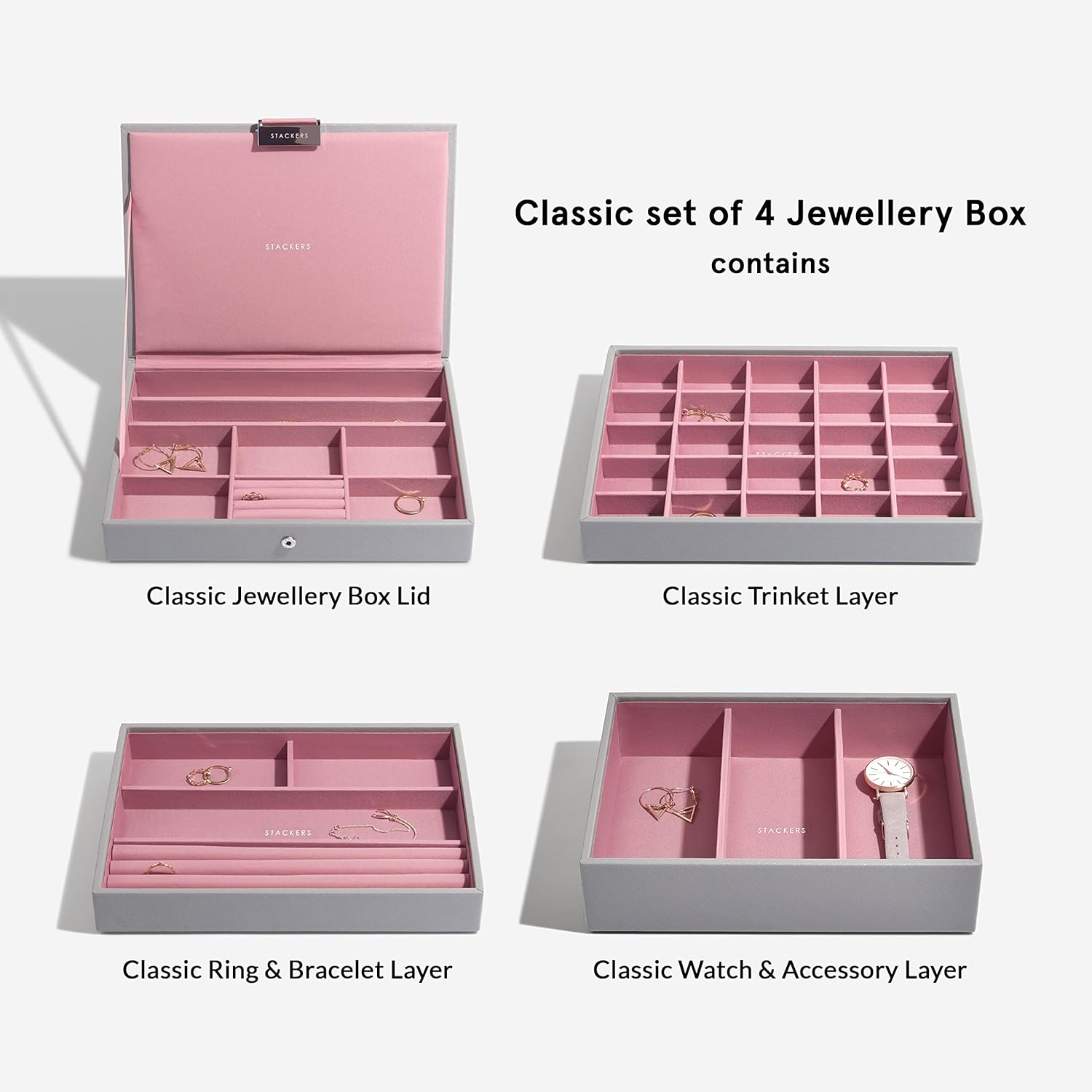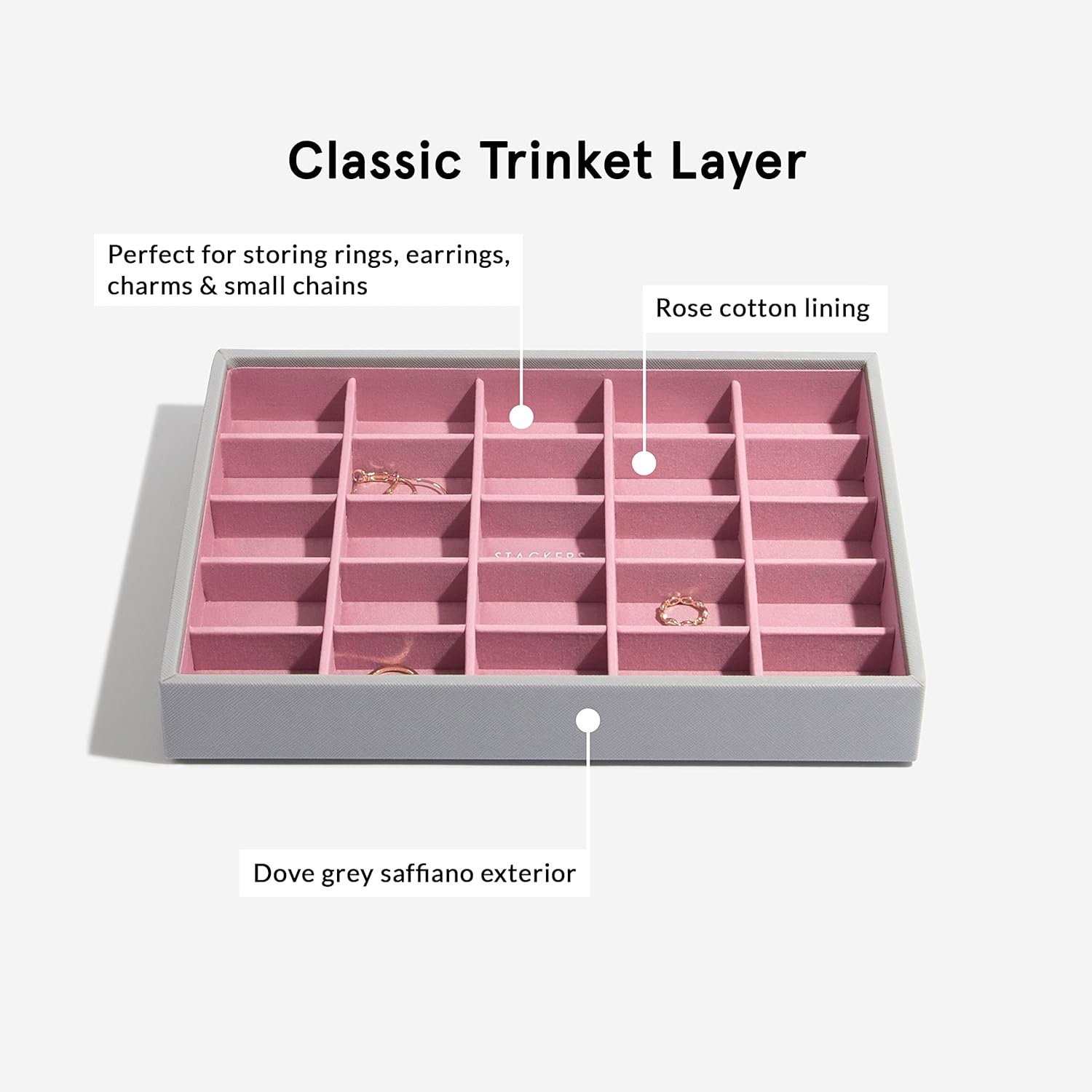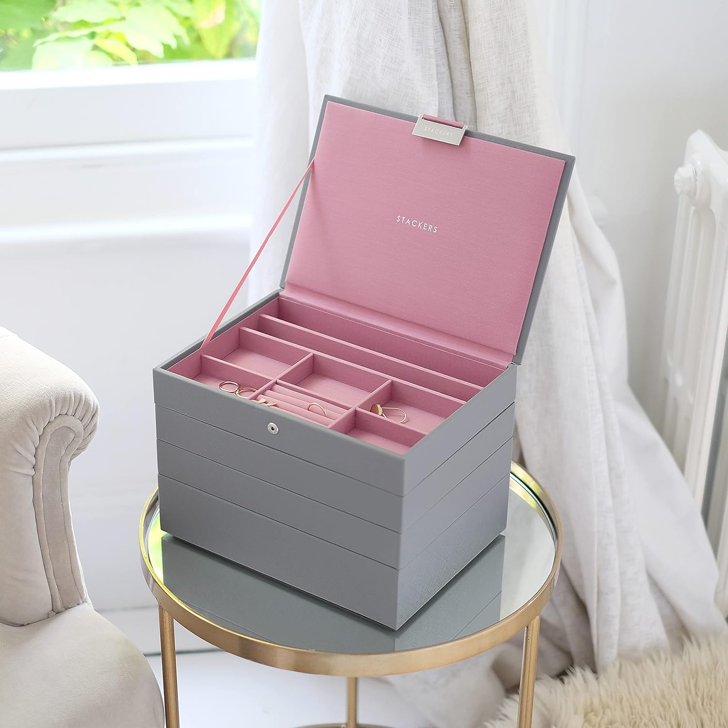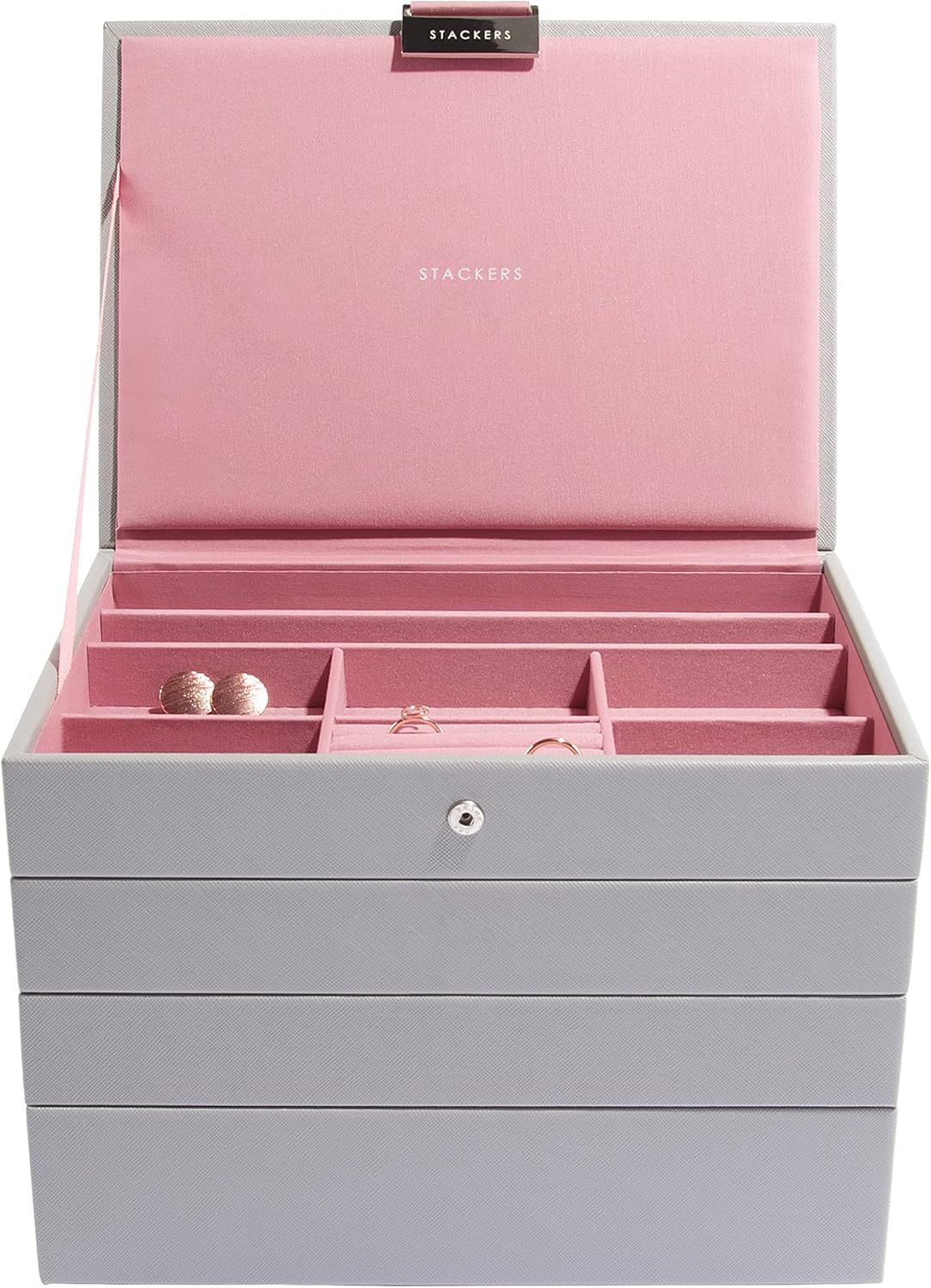 - Lassen Sie Ihren Schmuck nicht verheddern, anlaufen und vergessen. Organisieren Sie Ihre Sammlung mit einer Schmuckschatulle von Stackers