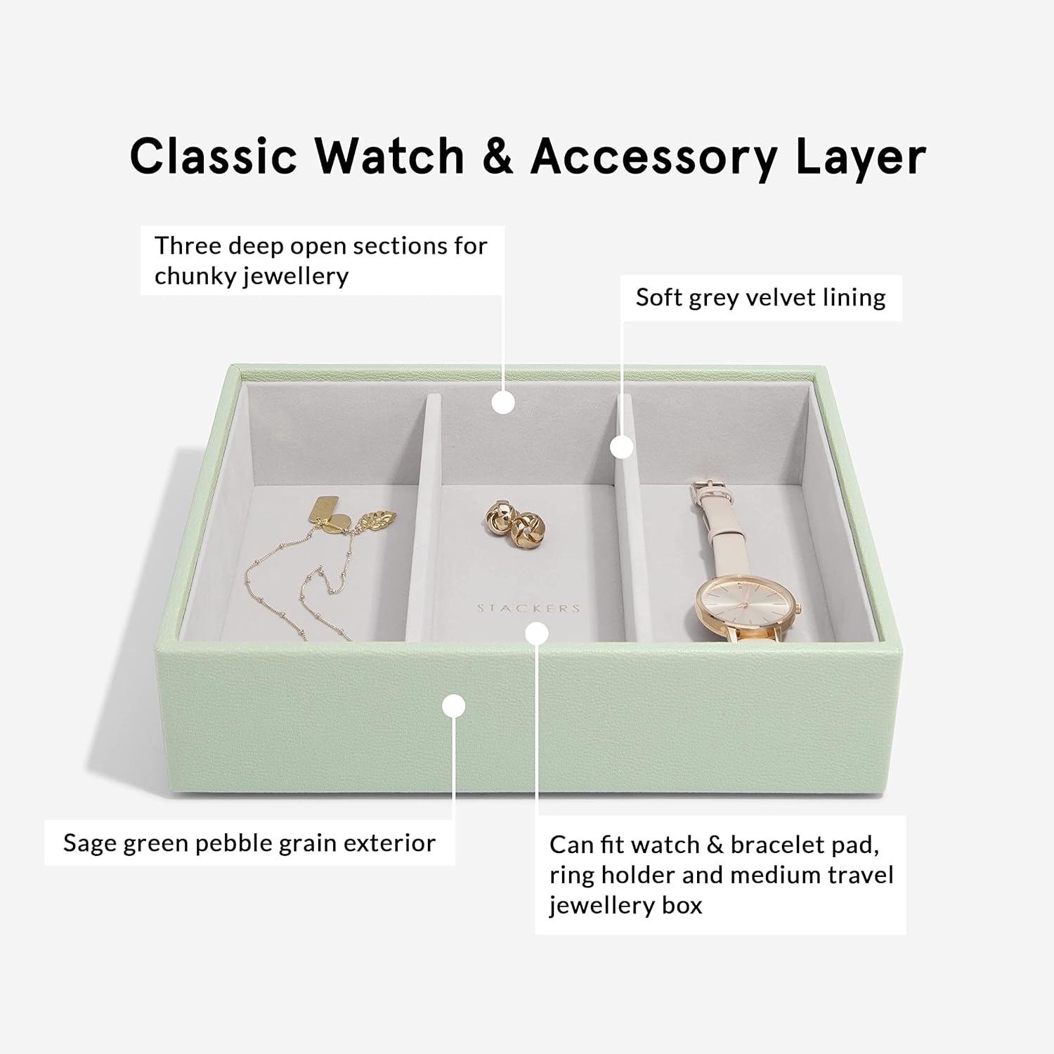 - Besteht aus einem Deckel, einer Trinket-Schicht, einer Uhren-/Accessoire-Schicht