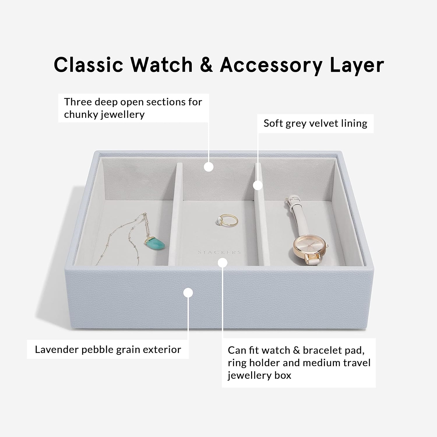 - Besteht aus einem Deckel, einer Trinket-Schicht, einer Uhren-/Accessoire-Schicht