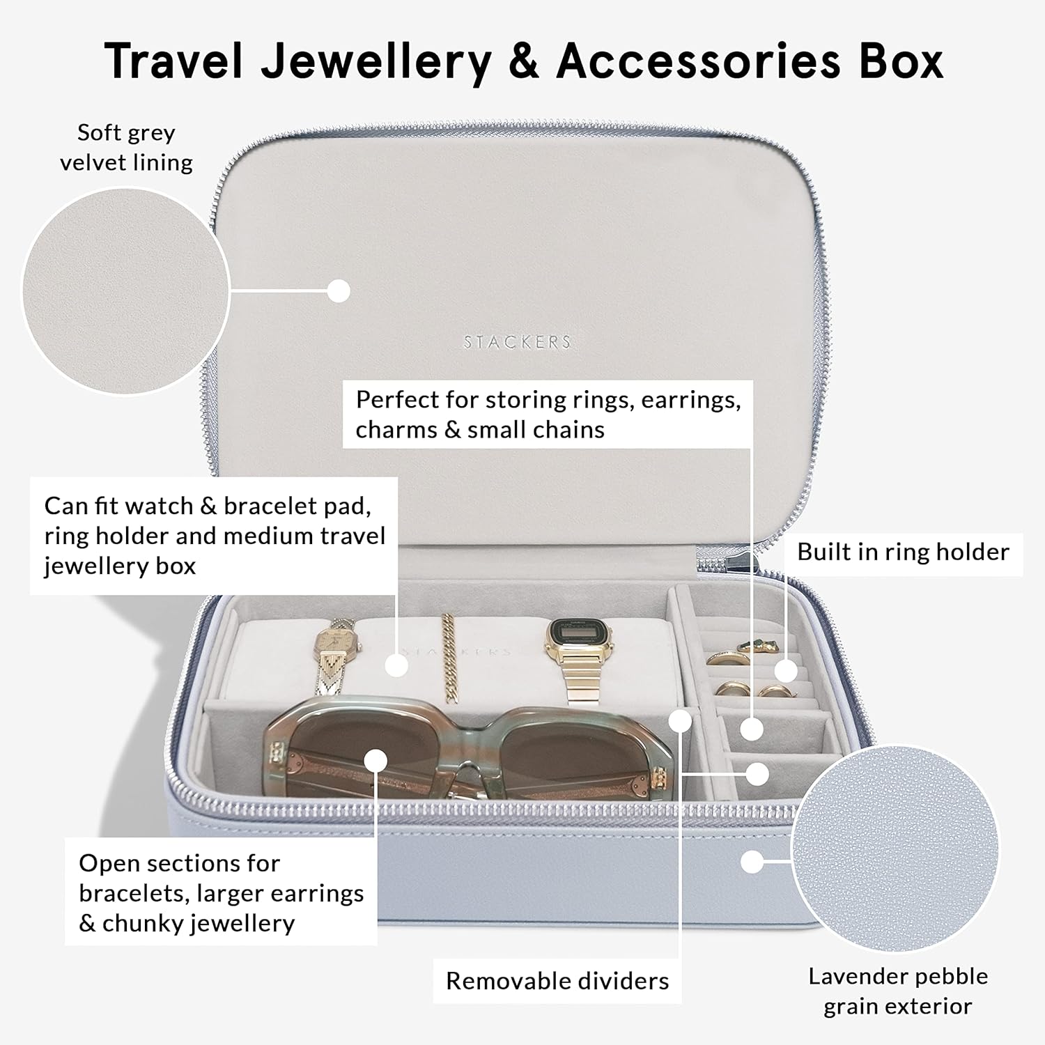 Stackers Lavendelfarbene Reise-Schmuck- und Zubehör-Box