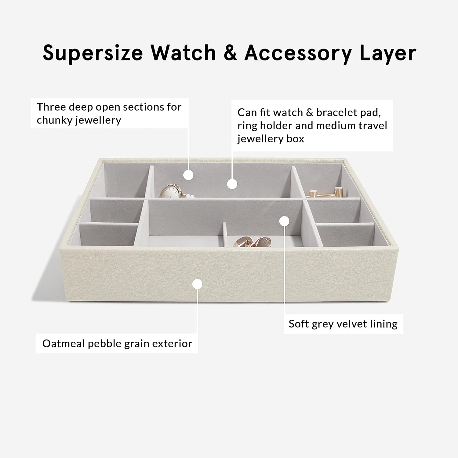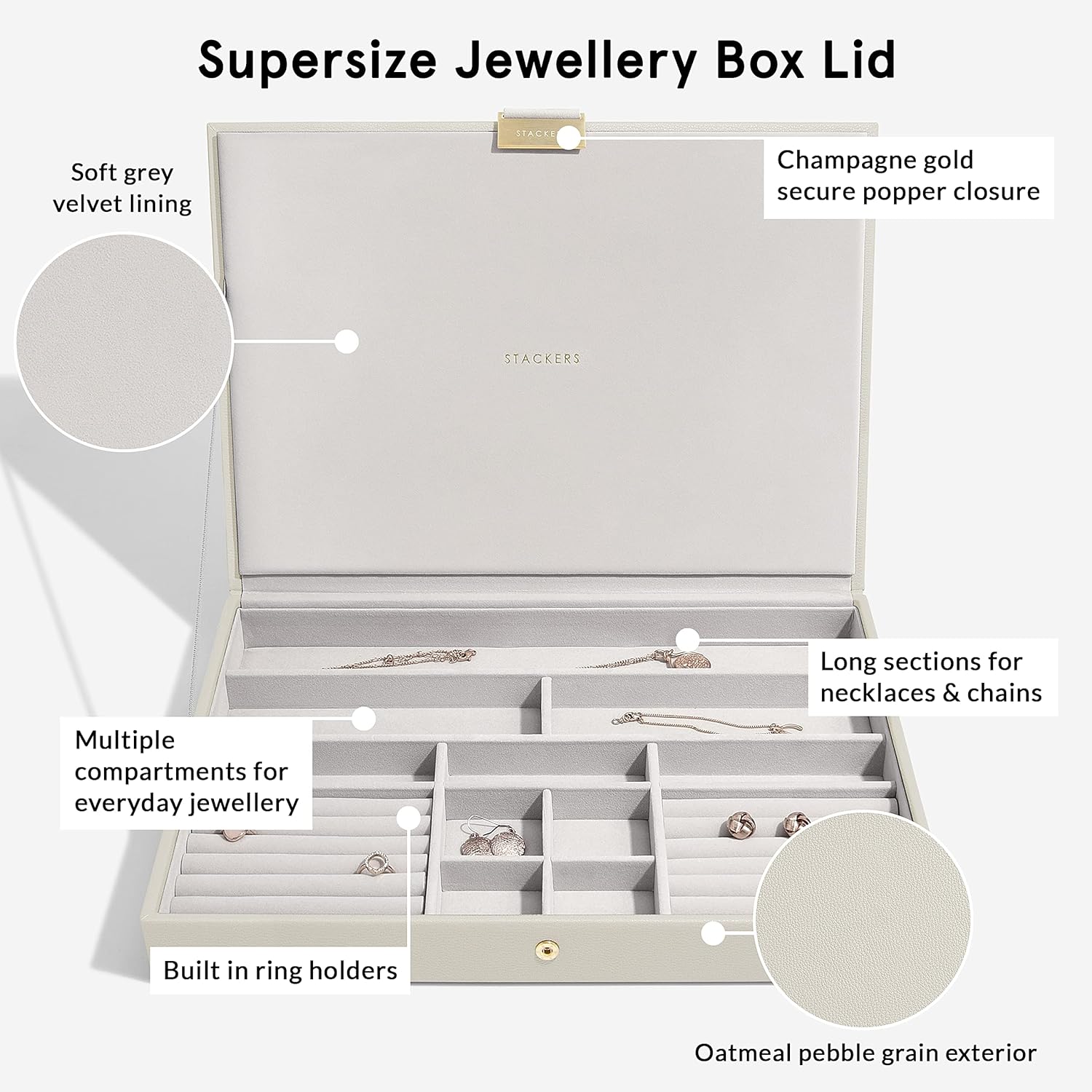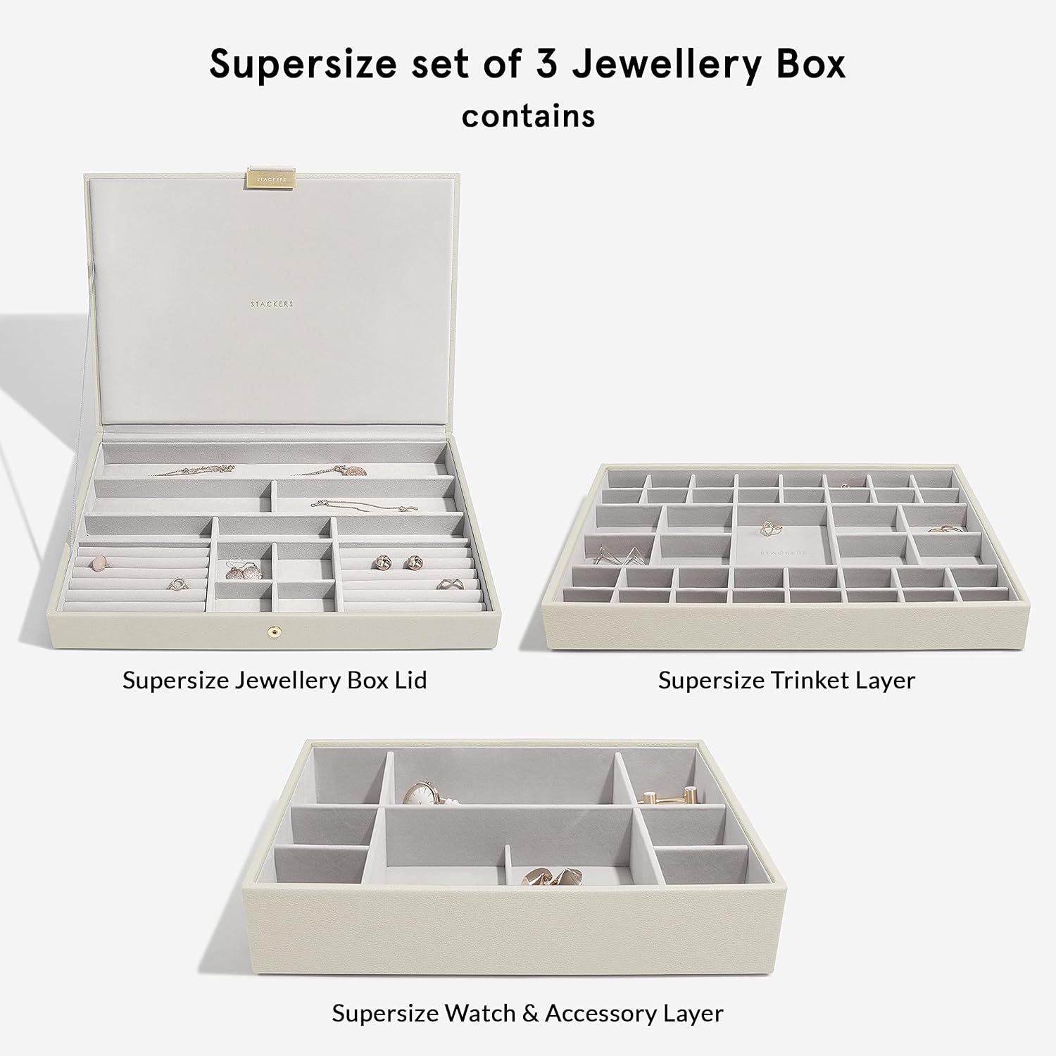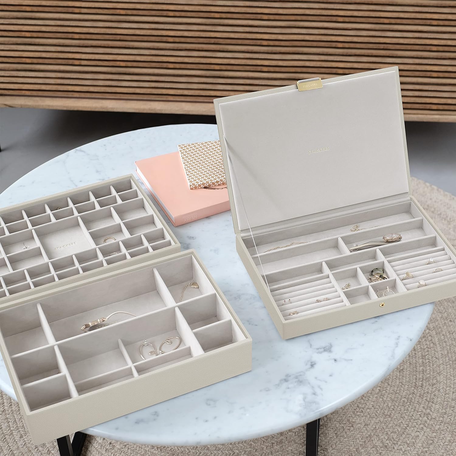- Lassen Sie Ihren Schmuck nicht verheddern, trüben und vergessen. Organisieren Sie Ihre Sammlung mit einer Stackers Schmuckbox.