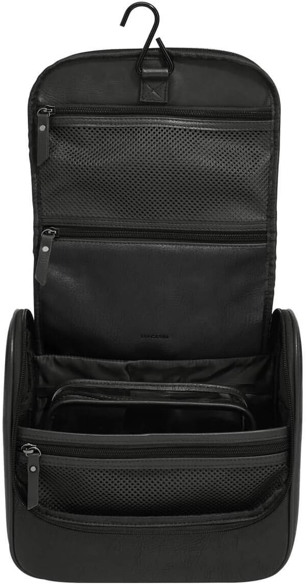 - Elastische Innentaschen, gross genug für Shampoos und Spülungen in voller Grösse und mehrere Fächer mit Reissverschluss