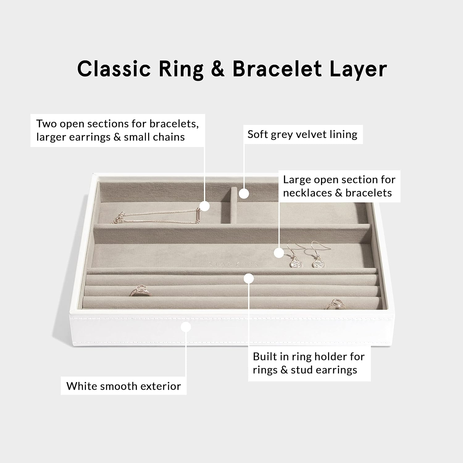 • Stackers: Nie wieder begrenzter Stauraum, denn Ihre Schmuckkollektion wächst und Ihr Stacker kann das auch.