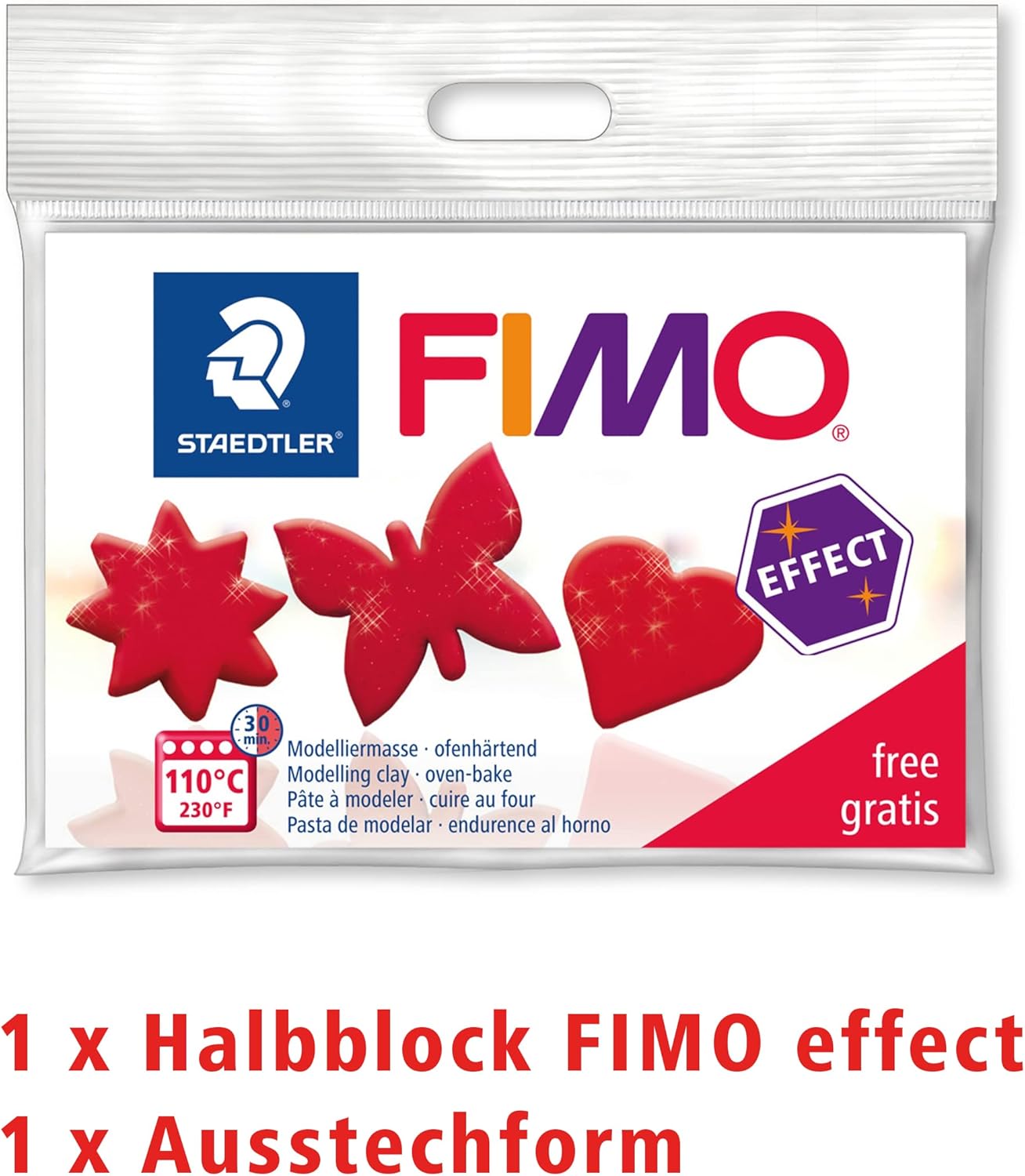 - Inklusive FIMO effect Halbblock in der Farbe "rot glitter" und Ausstechform in einem von vielen möglichen Motiven GRATIS!