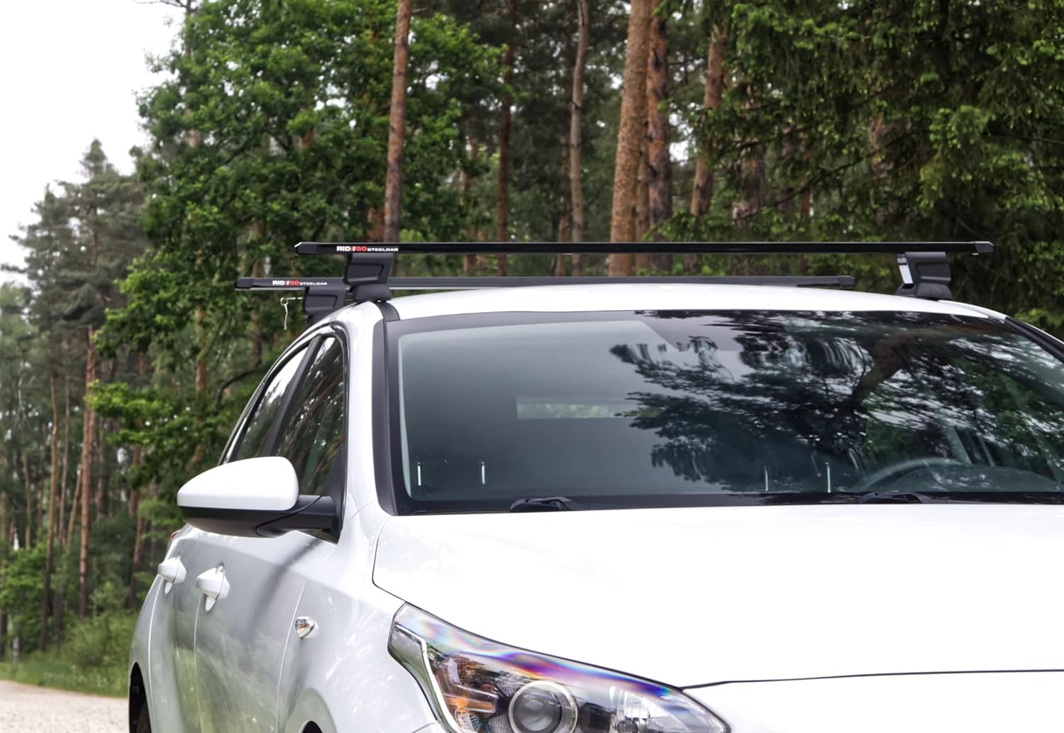 - Der Dachträger mit einem breiten Arbeitsprofil, mit dem Sie viele verschiedene Zubehörteile und Gegenstände transportieren können, die mit den Ziehbändern an der Schelle befestigt werden