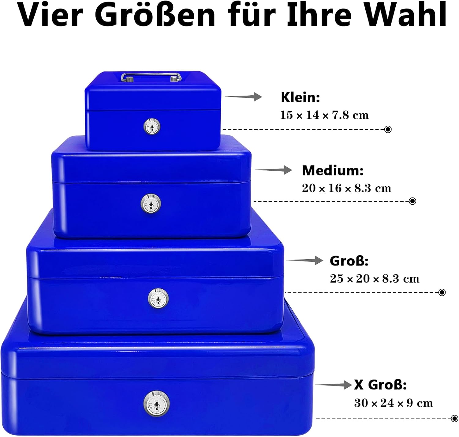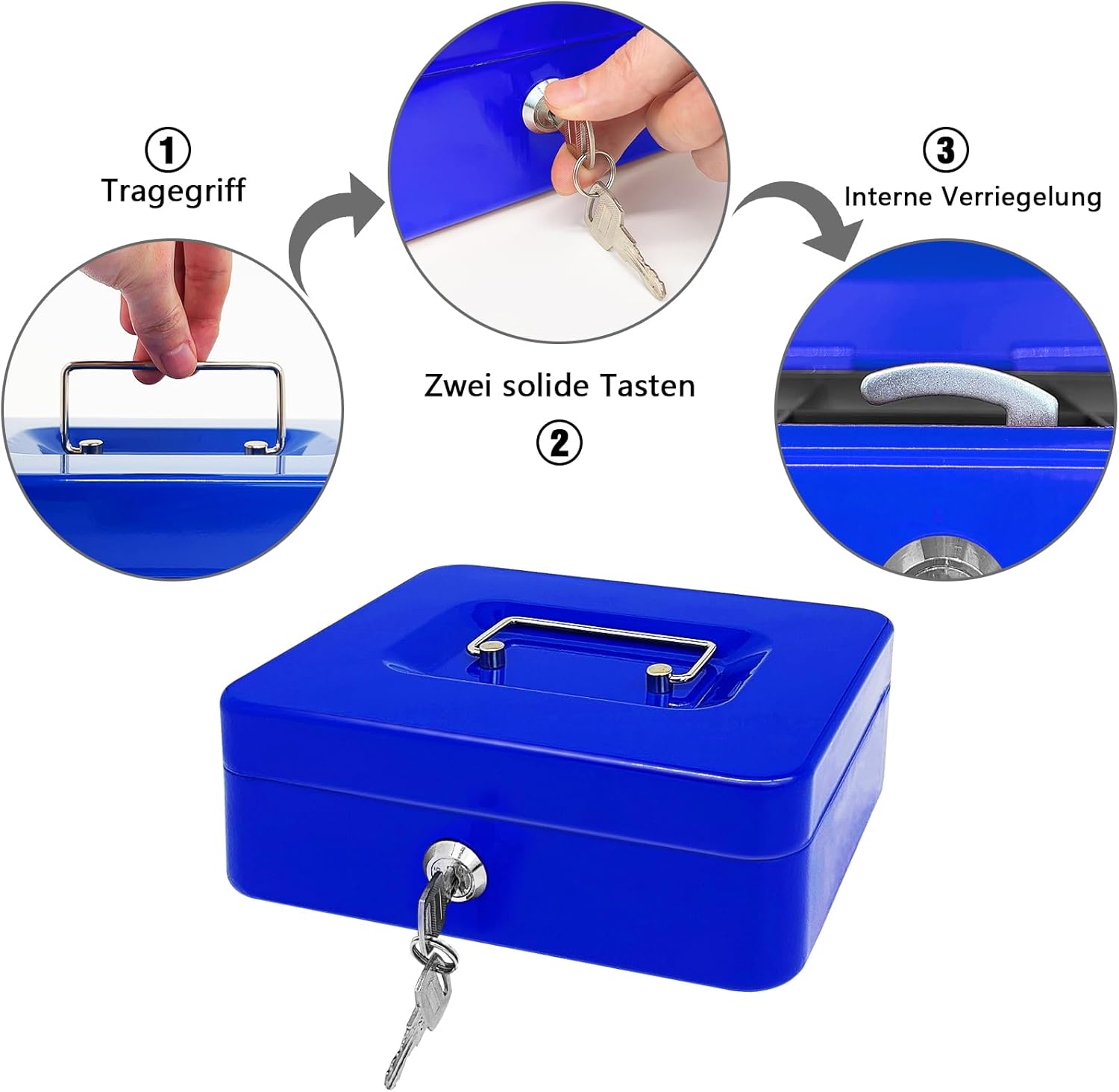 Stahlkassette mit Schlüsselschloss, Metall-Geldkassette mit Geldfach, Geldaufbewahrungsbox mit absch
