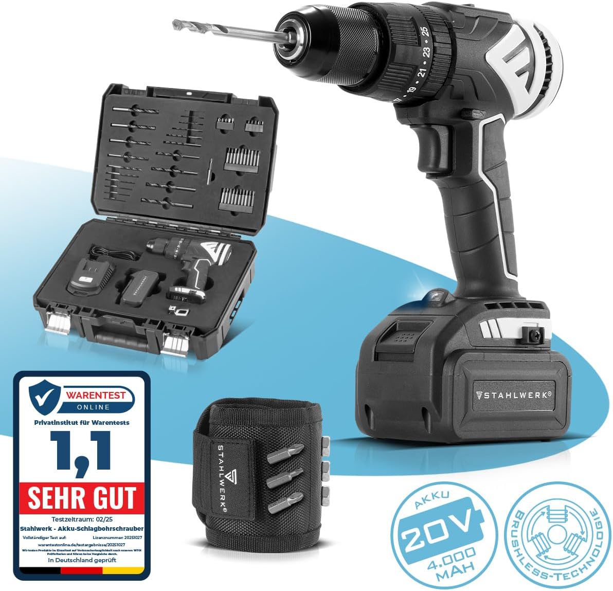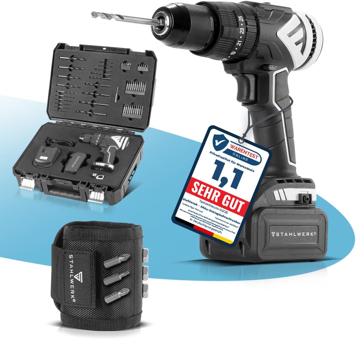 - Das starke 20 V Li-Ion Akkusystem (2 Ah & 4 Ah) ist kompatibel allen STAHLWERK 20V Akkuwerkzeugen
