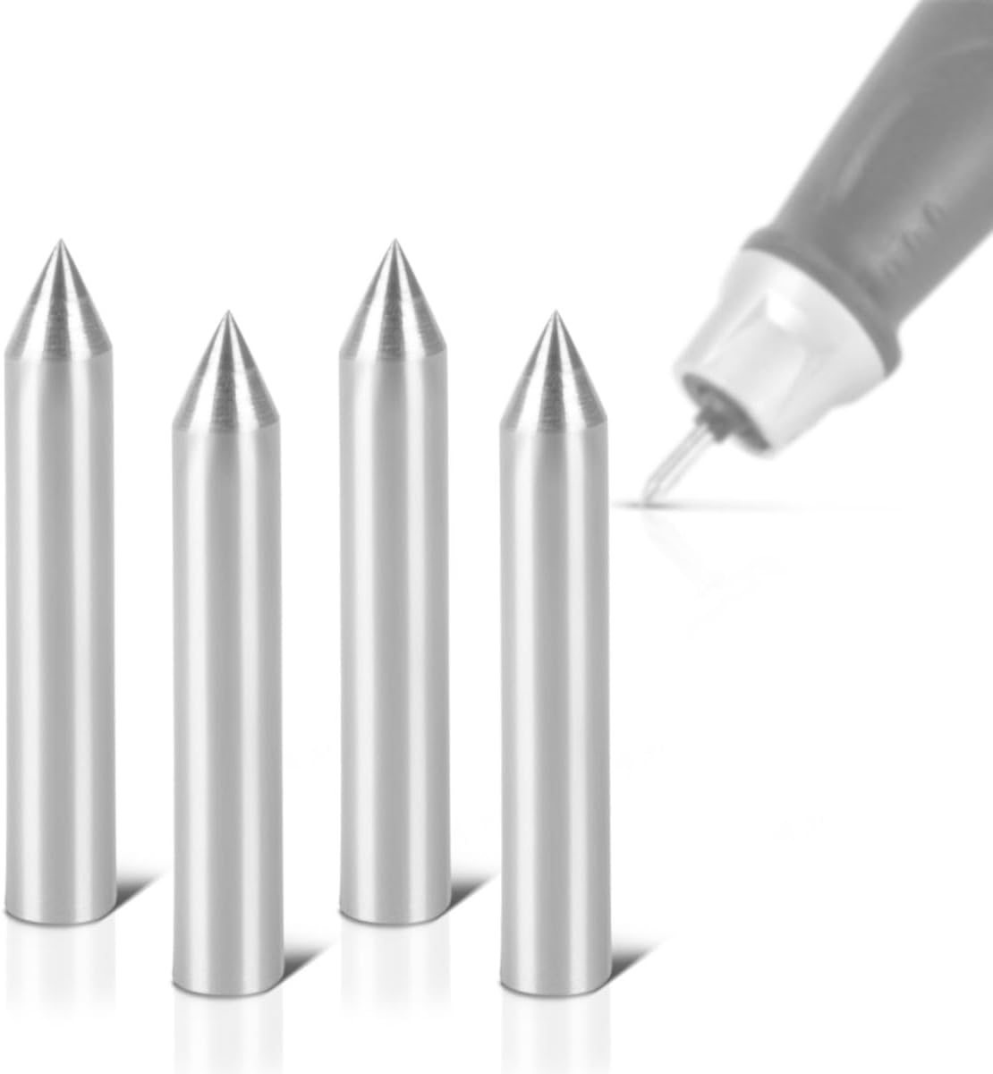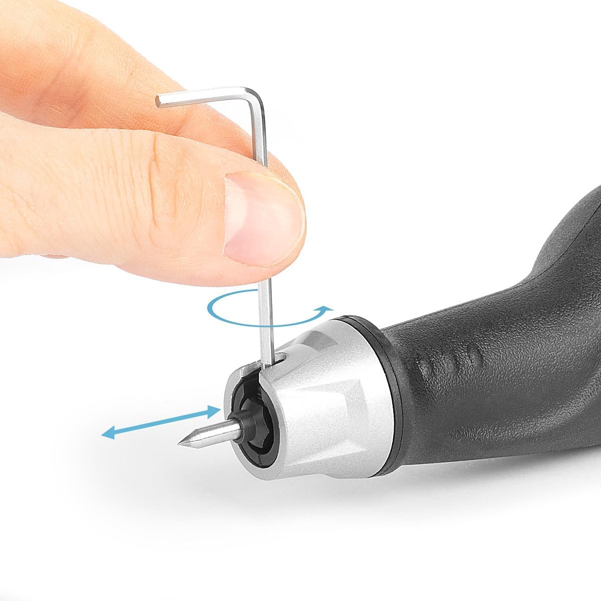 - 5 verschleissfeste Premium-Einsätze bieten für jede Anwendung das passende Gravurwerkzeug. Eine stabile Aufnahme gewährleistet den sicheren Halt der Präzisionsspitzen.