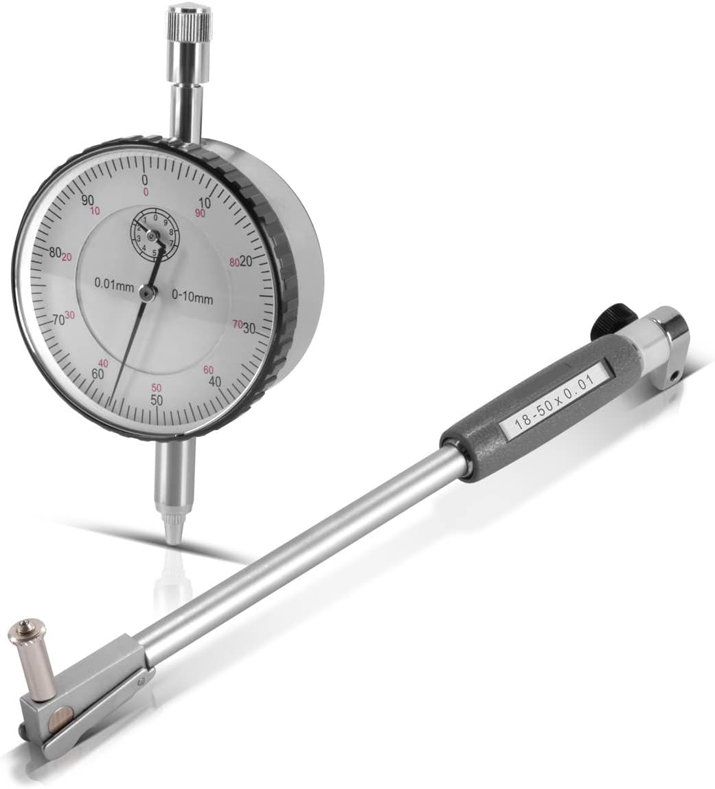 - Das Innenmessgerät eignet sich mit einem 2-Punkt-Messverfahren zum präzisen Messen von Bohrungsdurchmessern in einem Messbereich von 18-50 mm.