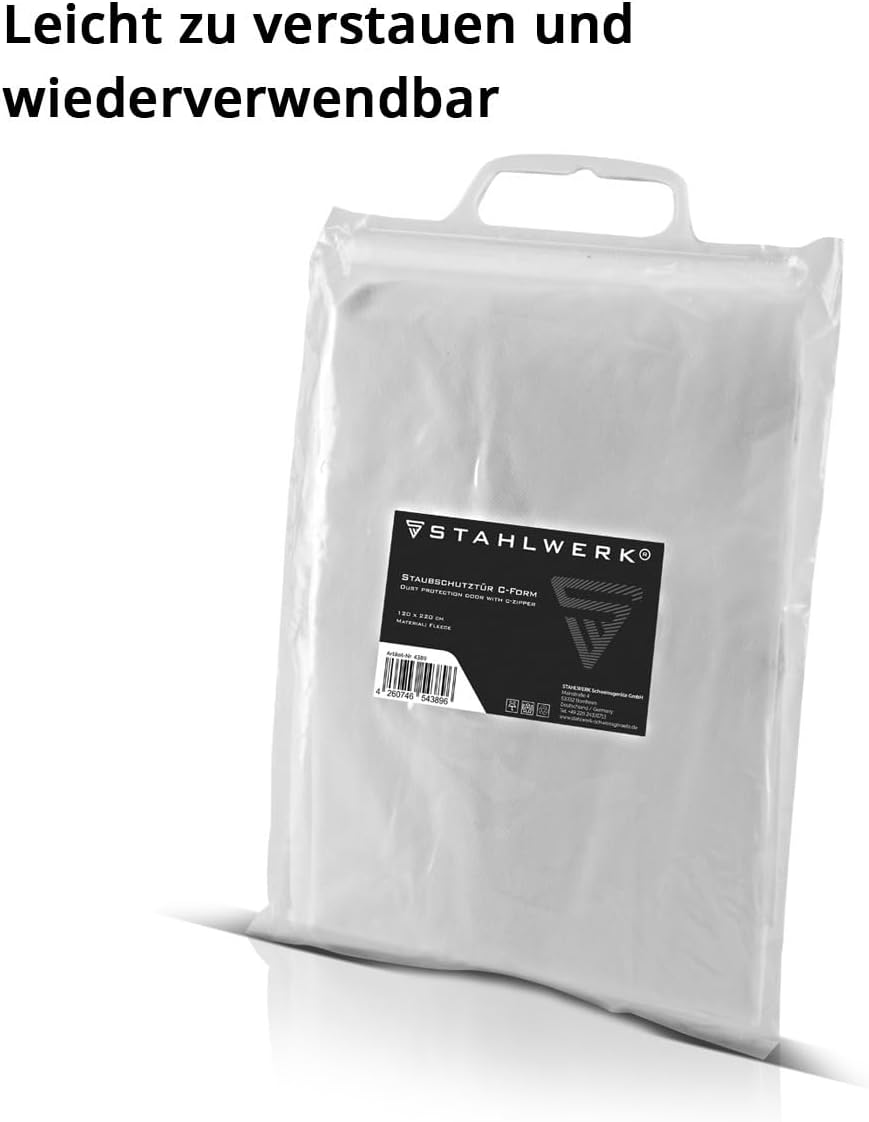 STAHLWERK Staubschutztür 3er Set C-Form Staubtür/Schmutzschleuse/Staubvorhang mit integriertem Reiss