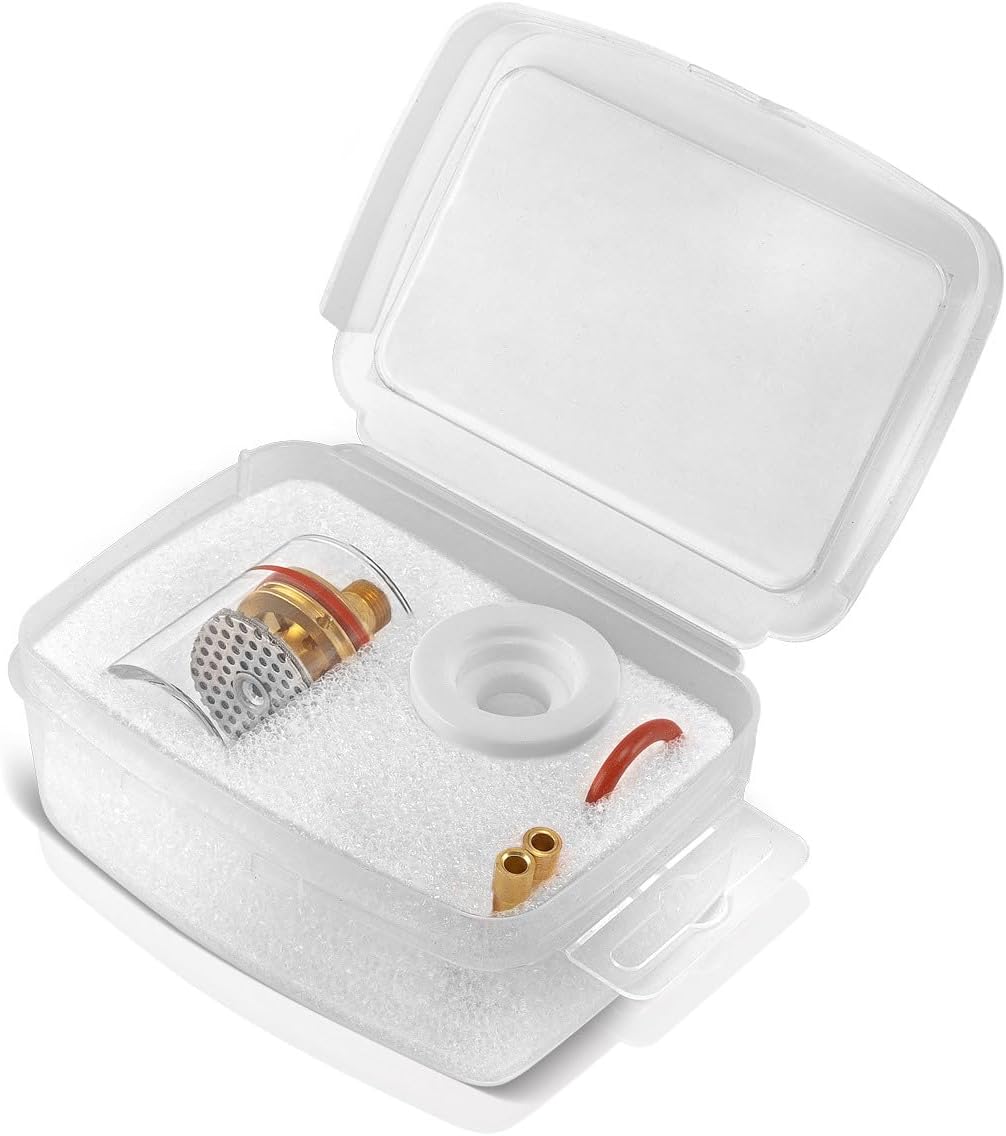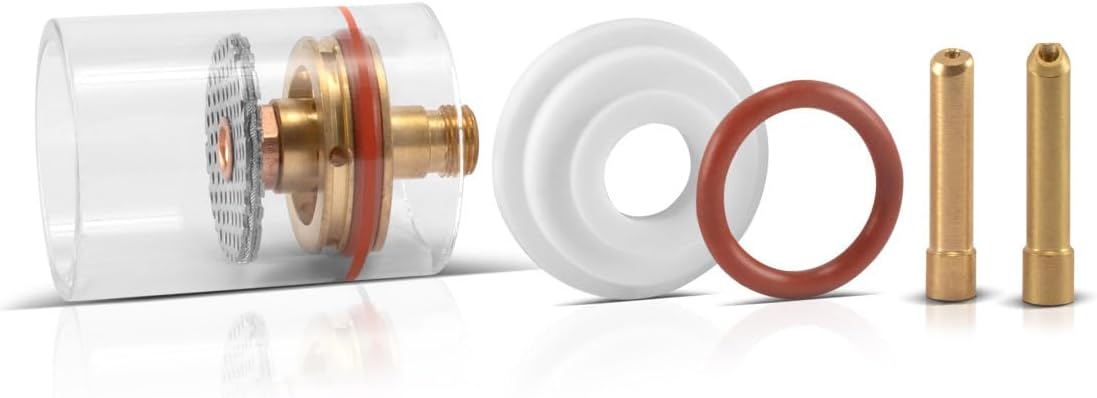 - Qualitativ hochwertiges WIG Glas Gaslinsen Schweisszubehör für Ihr WP 26 / 17 / 18 / SR-17 Schweissbrenner Schlauchpaket. Set 7-teilig.