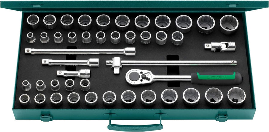Stahlwille Steckschlüssel-Garnitur 45-teilig (1/2“, Werkzeug-Set mit Stahlblechkasten, Steckschlüsse
