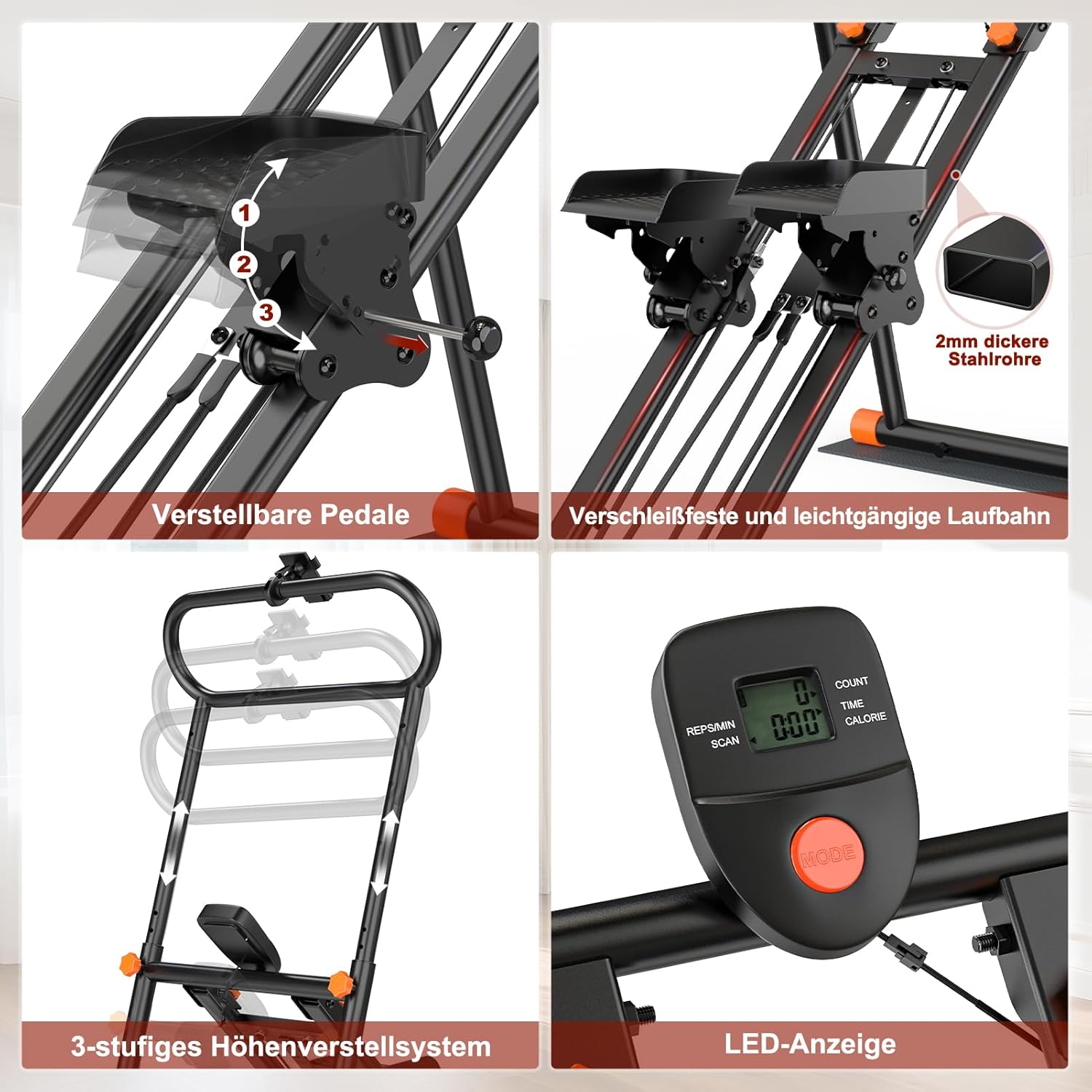 - 【Echtzeit-Fortschrittsverfolgung】Das leicht lesbare LCD-Display zeichnet Schritte, Trainingszeit und verbrannte Kalorien auf, um deinen Fortschritt immer im Blick zu behalten. Die kniefreundliche Konstruktion ist ideal für Personen mit empfindlichen