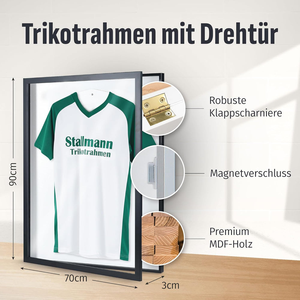 - 🍀 Dieser 3D Rahmen [ 70x90 cm] bietet zusätzliches Raumgefühl für das Trikot. Objekte bis zu einer Tiefe von [ 30mm / 3cm ] können darin verstaut werden.