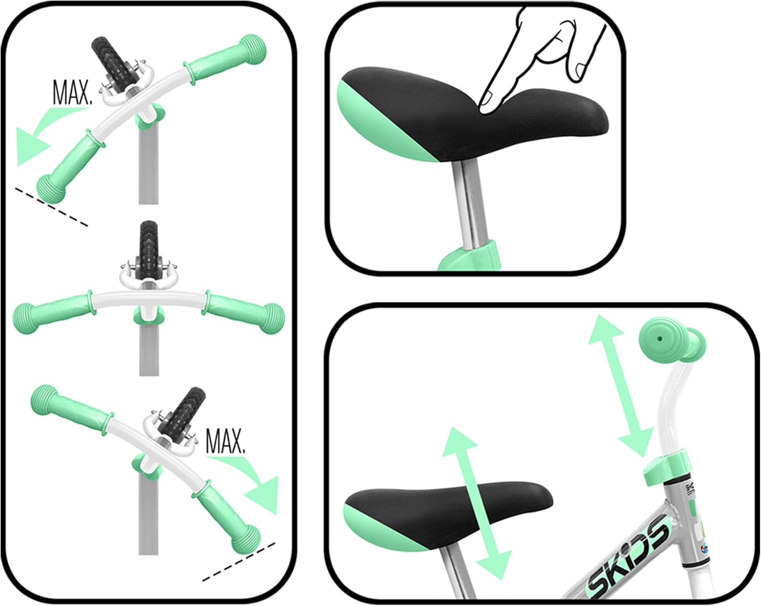 - Verstellbarer Sattel und Lenker. Anti-Quetsch-Griffe.