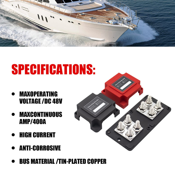 - 【Höchstspannung】Stromschiene mit höchster Stromstärke (400A) mit 8*M10 (3/8 ") - Anschlussbolzen (auch in M8 erhältlich). Maximale Betriebsspannung: 48V DC.