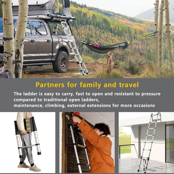 - 【Breites Einsatzspektrum】: Das Teleskopdesign der Leiter ermöglicht es Ihnen, die Höhe leicht an Ihre Bedürfnisse anzupassen. Egal, ob Sie putzen, dekorieren oder in der Höhe arbeiten, Sie können sie einfach auf die gewünschte Höhe einstellen.