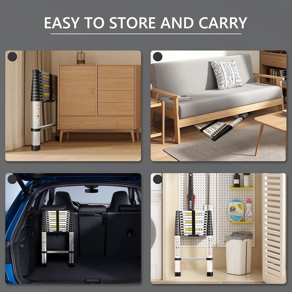 - 【Sicherheit】: 30cm Stufen in Übereinstimmung mit internationalen Standards, jeder Abschnitt der Leiter hat eine Sicherheitsverriegelung. Anti-Rutsch-Stufen mit einer Standardbreite von 4cm und verdickten rutschfesten Fusspads.