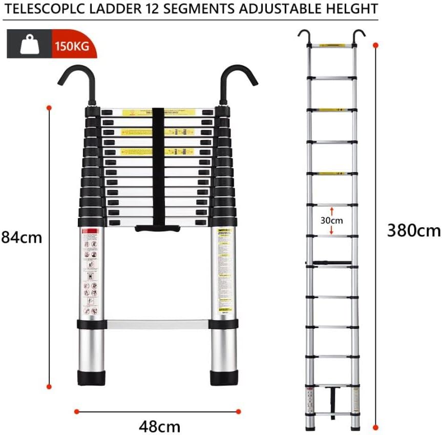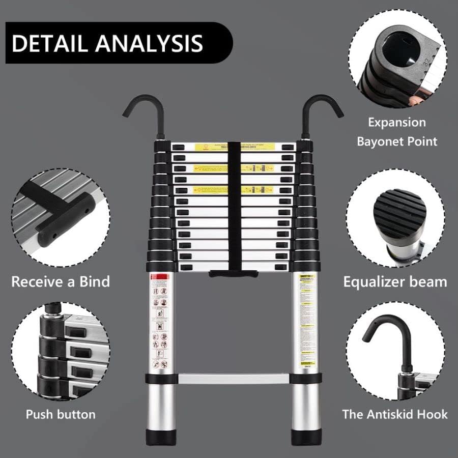 - 【Abnehmbare Haken】: Die Teleskopleiter verfügt über abnehmbare Haken, die fest an der Spitze befestigt sind, um Stabilität, Sicherheit und Komfort bei der Verwendung zu gewährleisten.