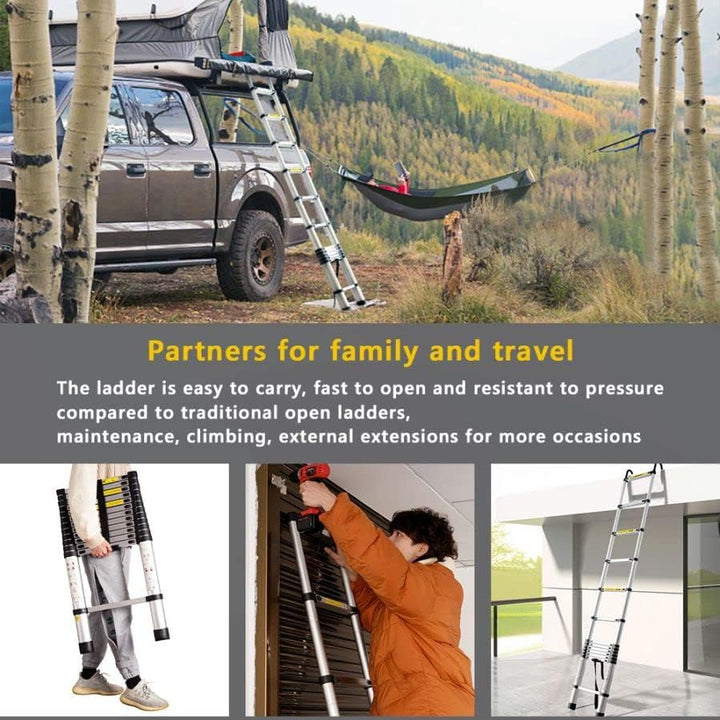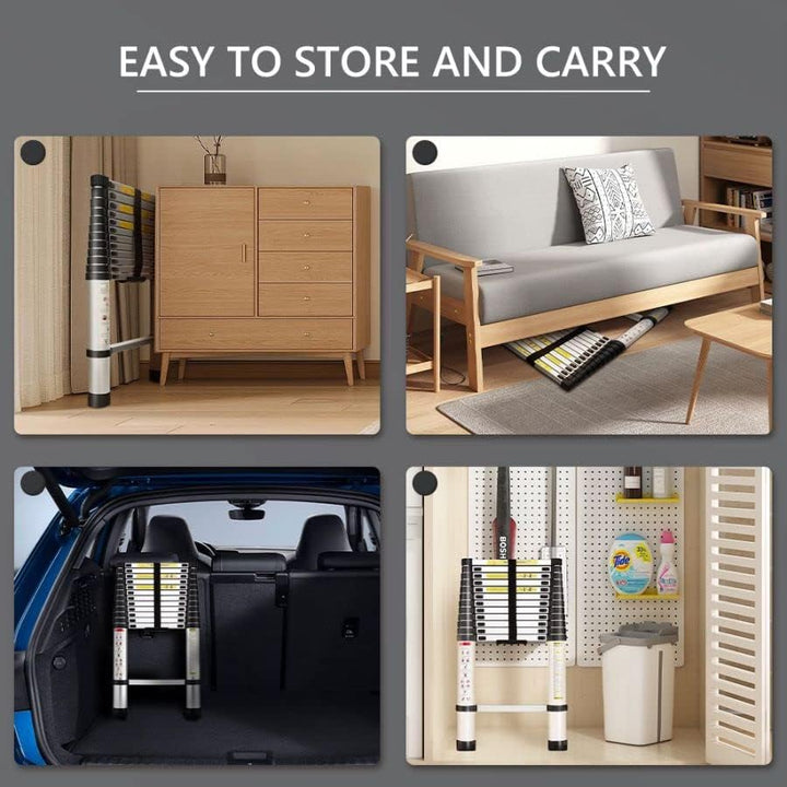 - 【Breites Einsatzspektrum】: Das Teleskopdesign der Leiter ermöglicht es Ihnen, die Höhe leicht an Ihre Bedürfnisse anzupassen. Egal, ob Sie putzen, dekorieren oder in der Höhe arbeiten, Sie können sie einfach auf die gewünschte Höhe einstellen.