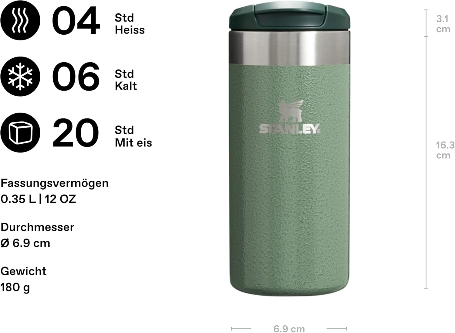 - Aerolight federleichte Isolierung: Die doppelwandige Vakuumisolierung aus gesponnenem Stahl reduziert das Gewicht, ohne die Wärme- oder Kältespeicherung zu beeinträchtigen. Stanley Thermosflaschen halten deinen Tee heiss und dein Wasser kalt